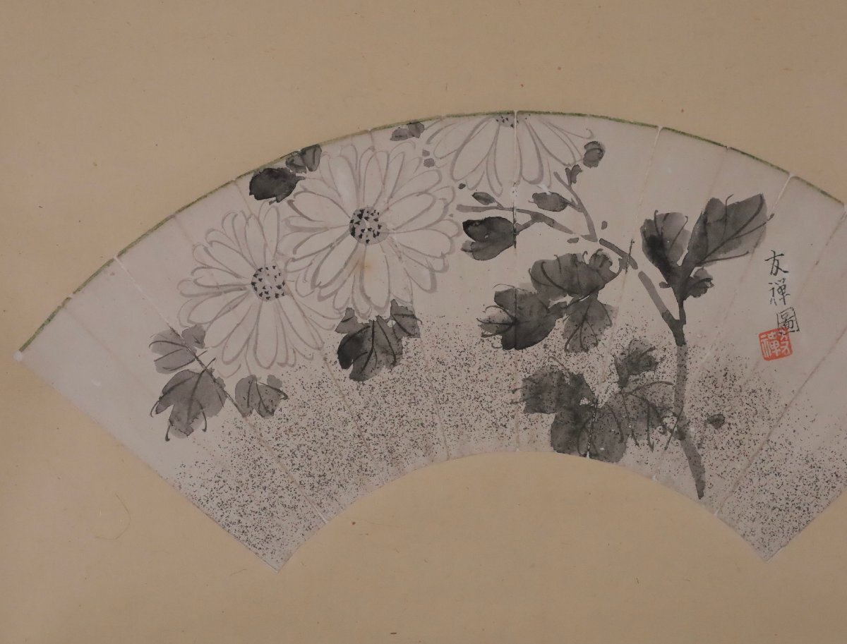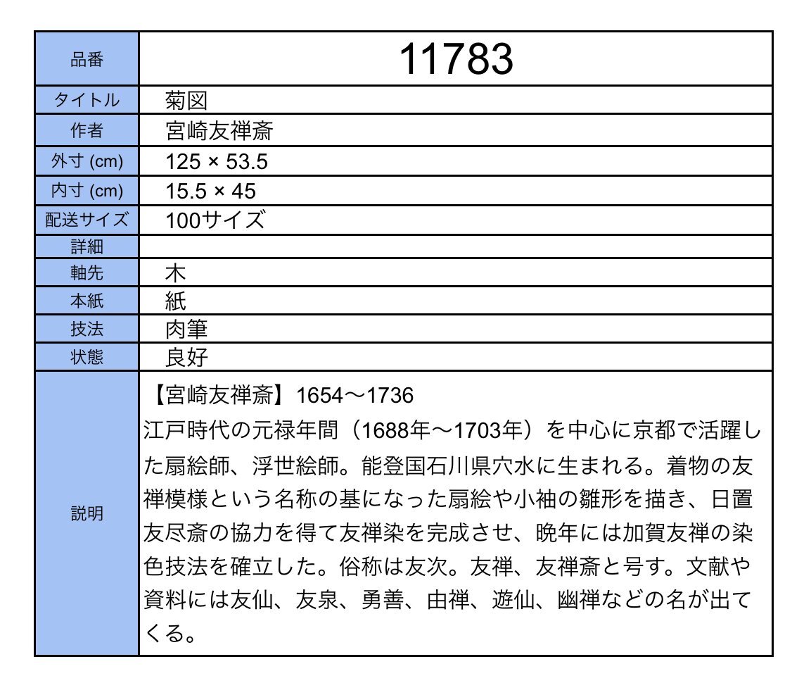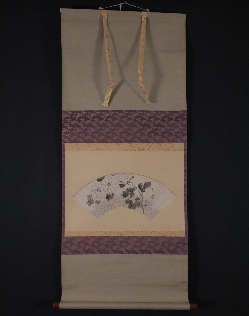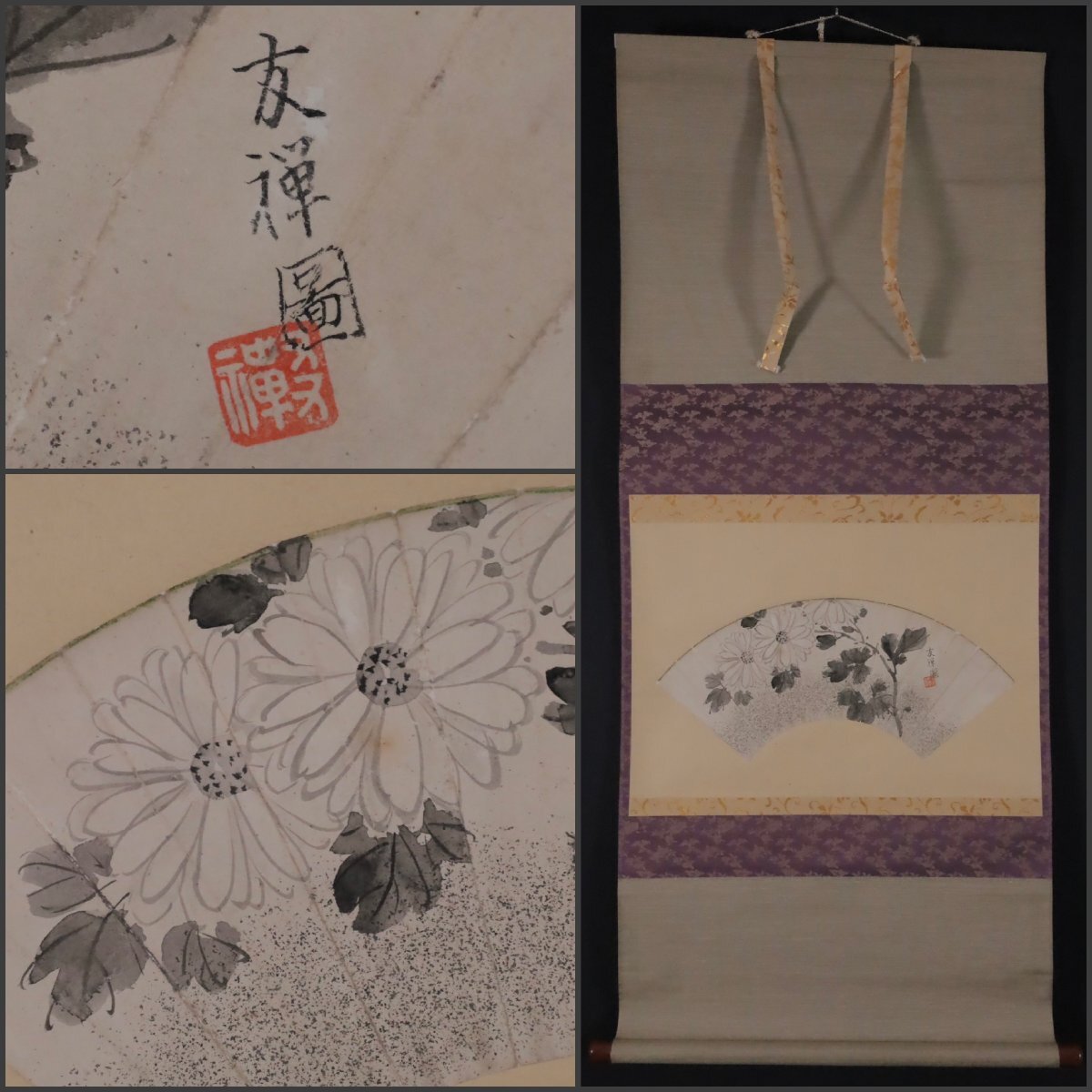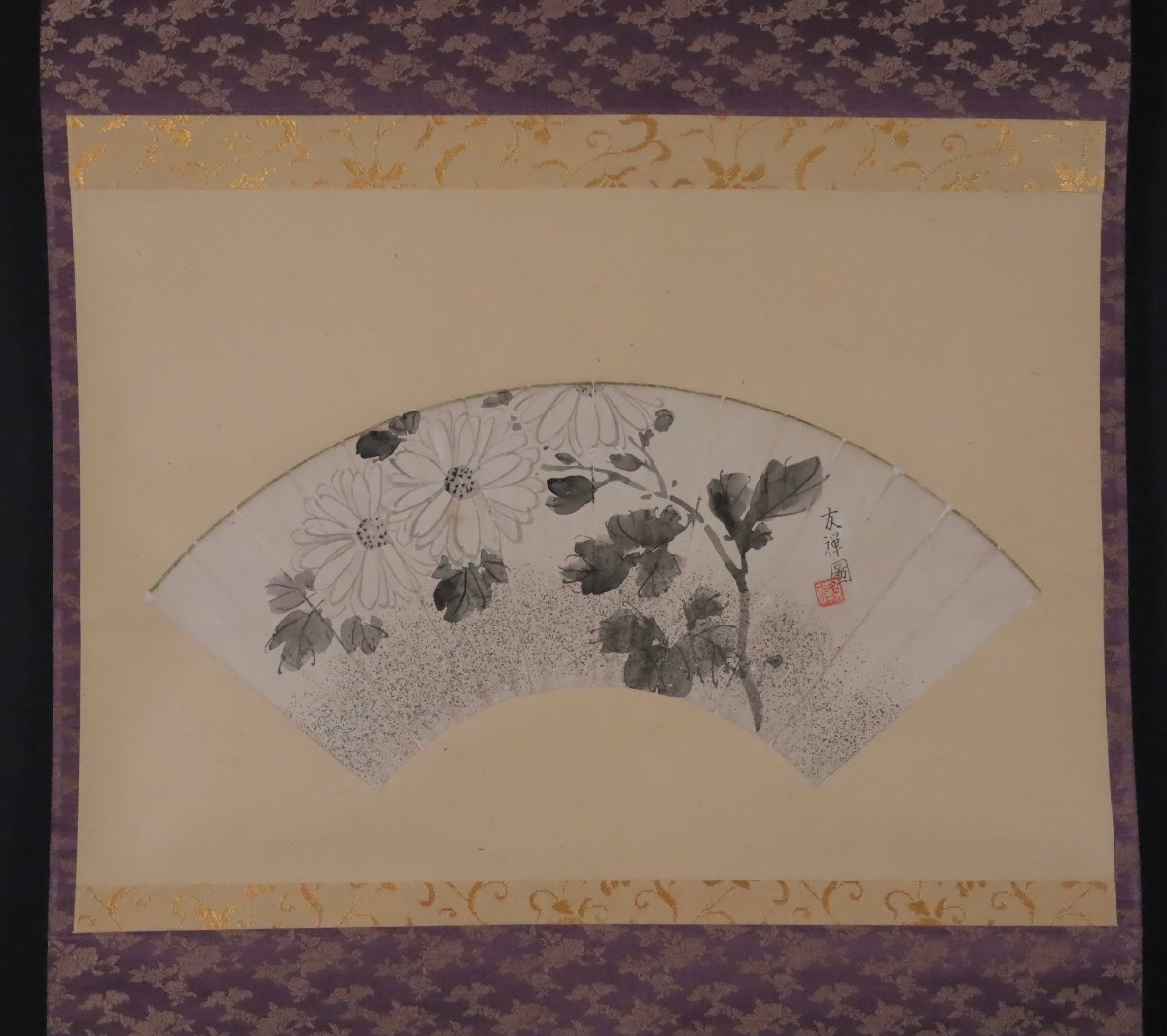 【模写】吉】11783 宮崎友禅斎 菊図 友禅模様 友禅染め 浮世絵師 能登国 石川県の人 茶掛け 茶道具 中国画 掛軸 掛け軸 骨董品