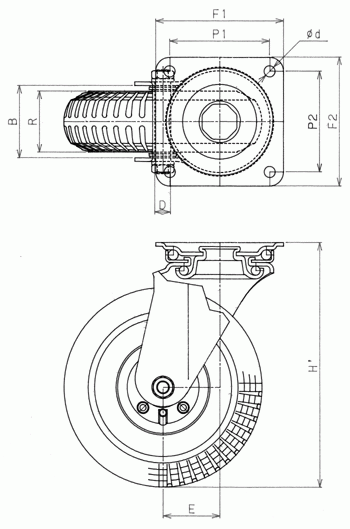 旋回機能と車輪回転機能を持つキャスター。