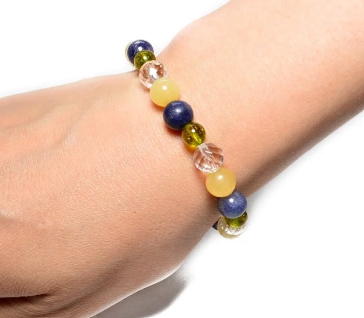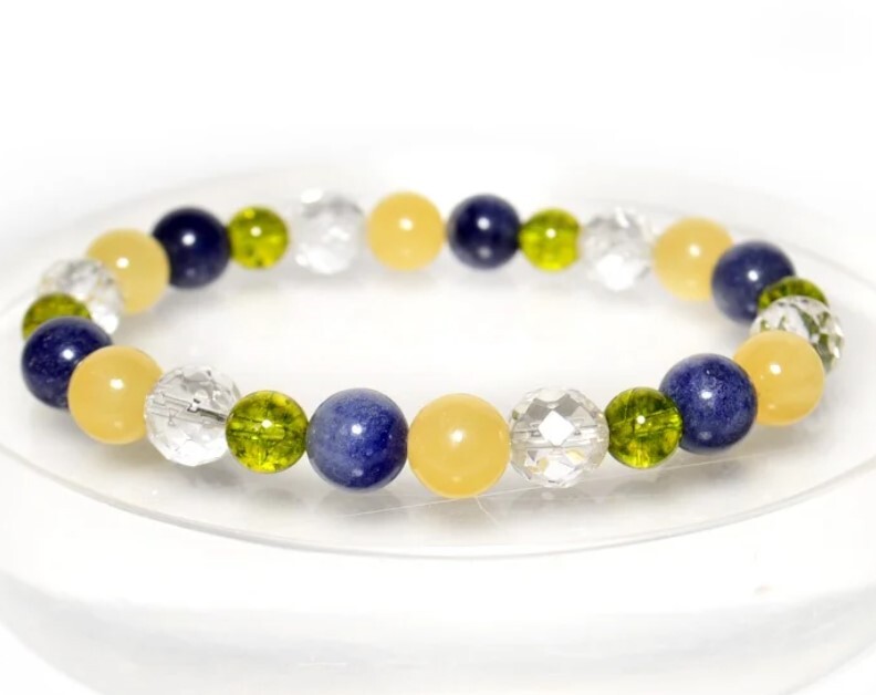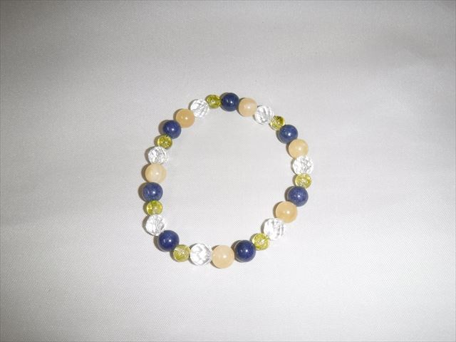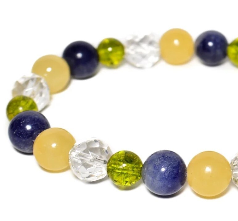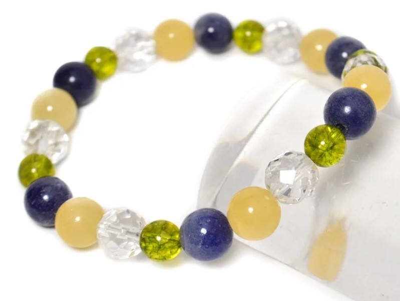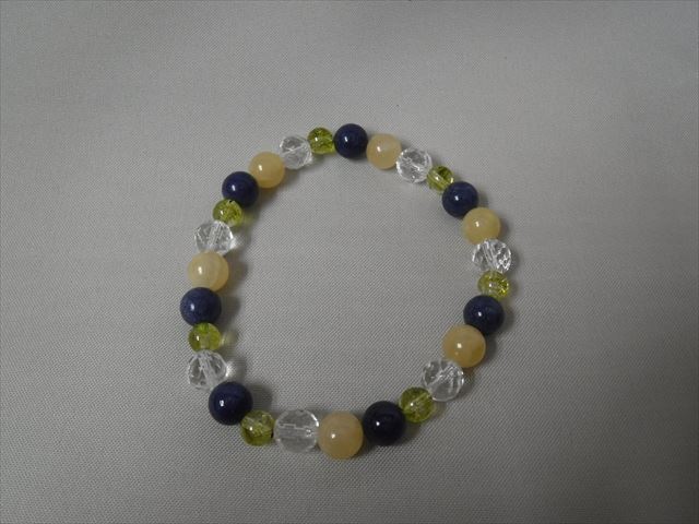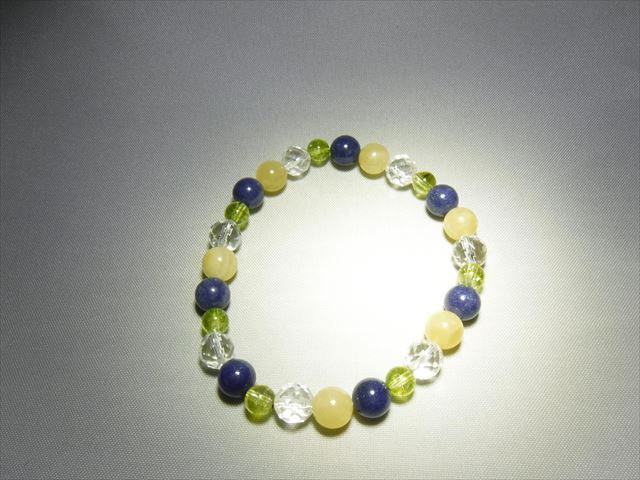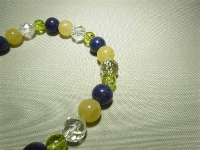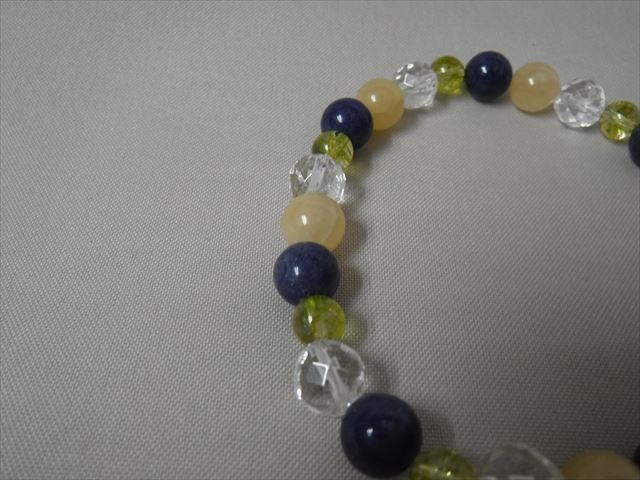 ■使用している石 アラゴナイト 8mm玉 心身のバランスを整え、日々の緊張を和らげて安眠、リラックスの効果 ブルーアベンチュリン 8mm玉 ストレスを和らげて心身のバランスを整えてくれ、ポジティブな気持ちになれます カット水晶 8mm玉 クラック水晶グリーン 6mm玉