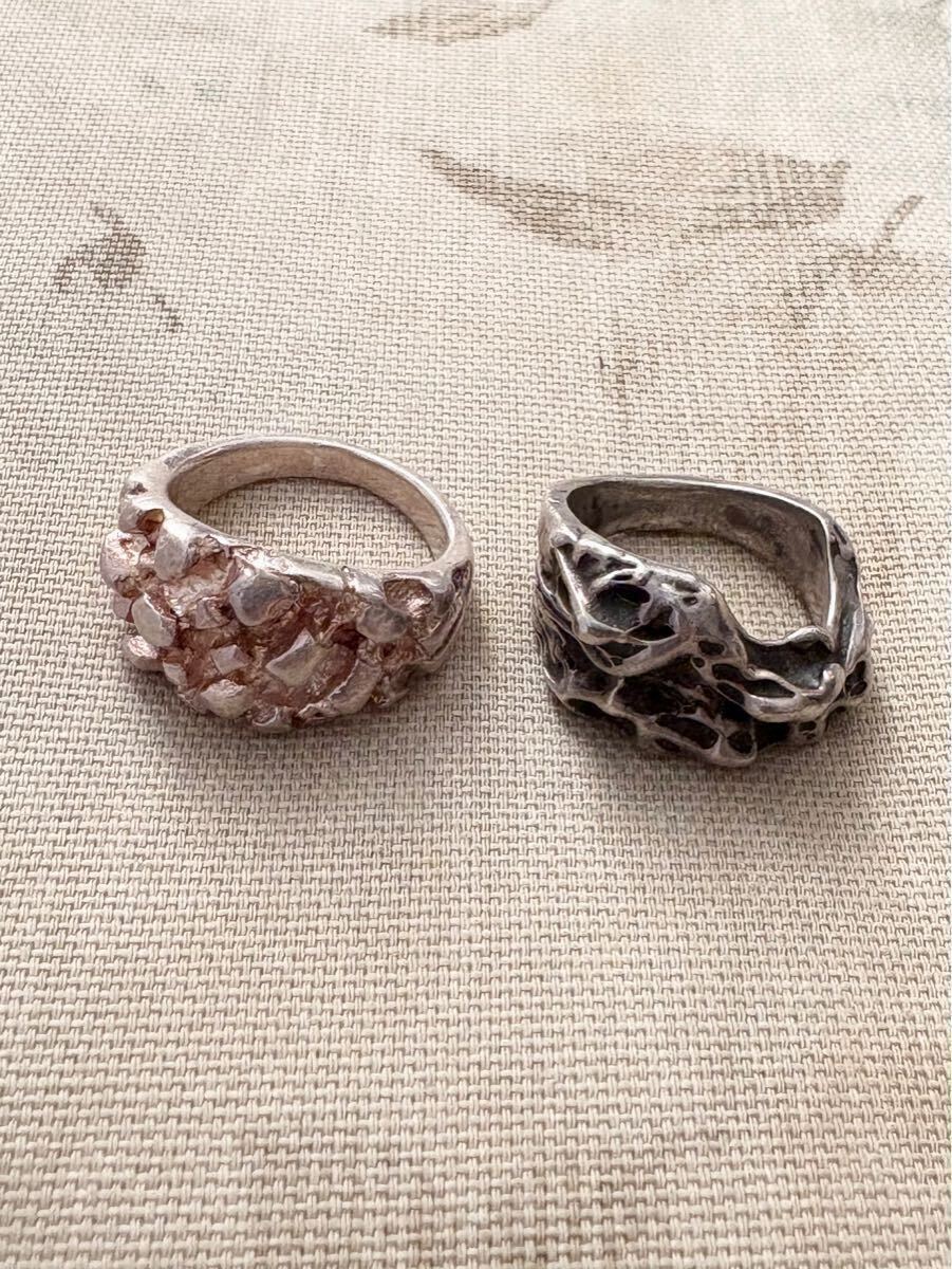 塊モチーフのリング2点。