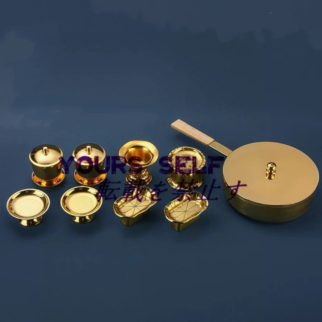 密教法具 真言宗 聖天用法具 大根器/天座/団器/華水器 9点 仏具 真鍮製 磨き仕上げ