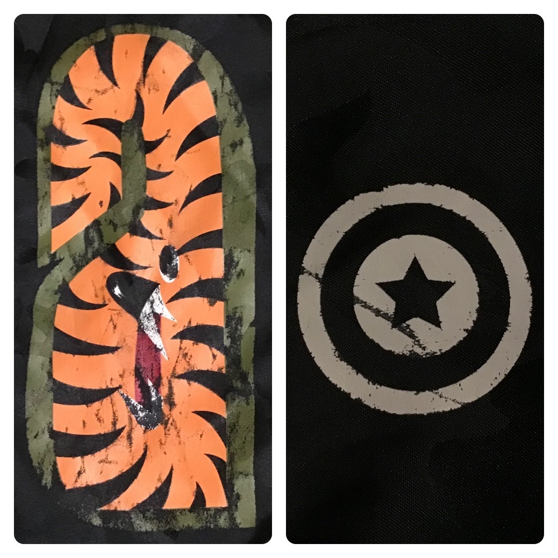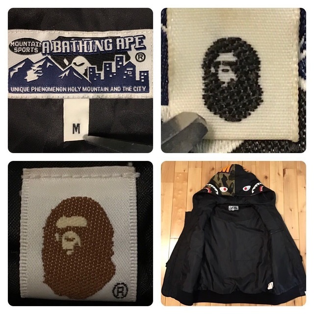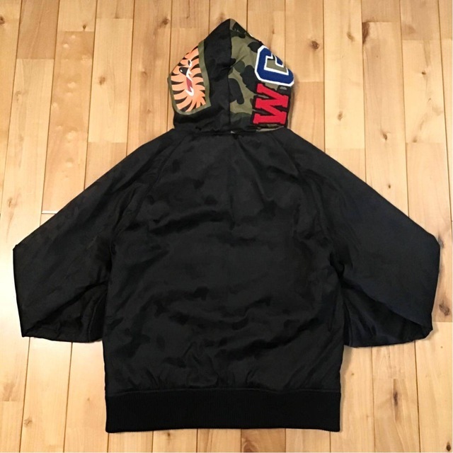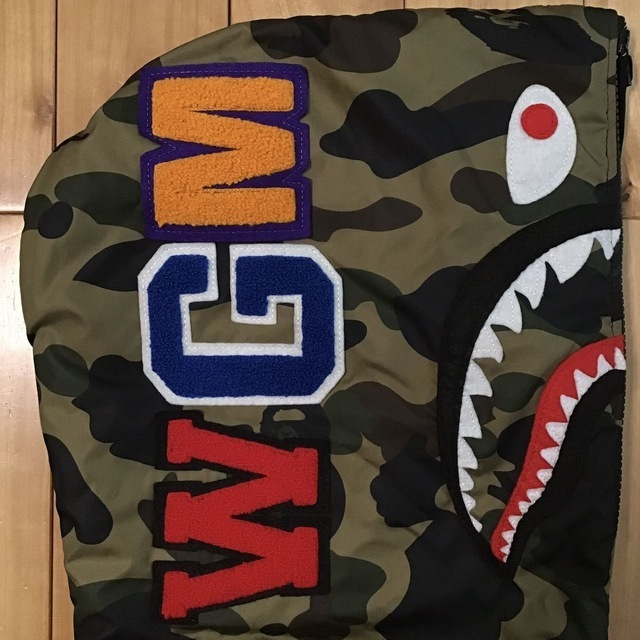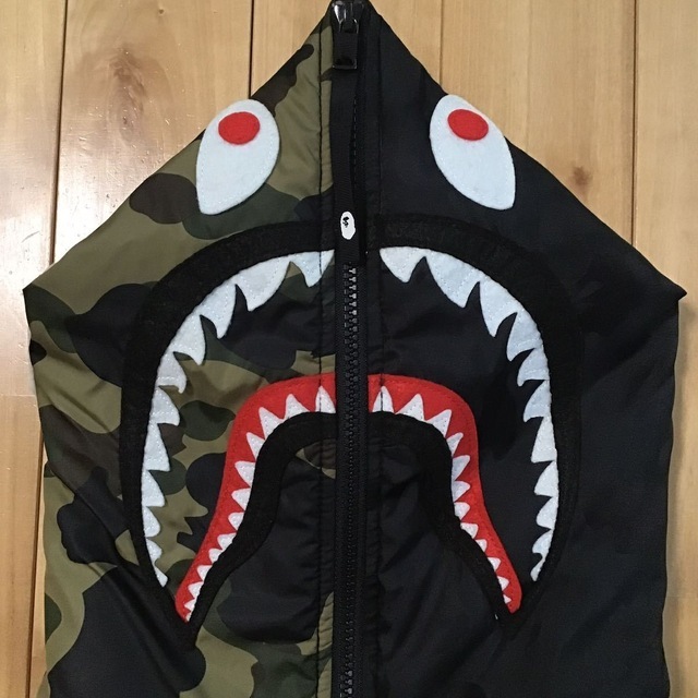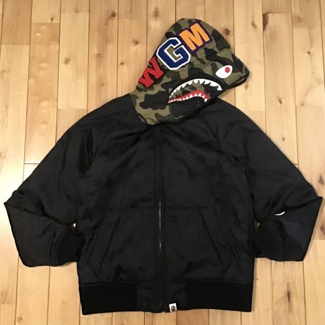 a bathing ape 中綿 シャークパーカー ジャケット black × 1st camo green Mサイズ です★