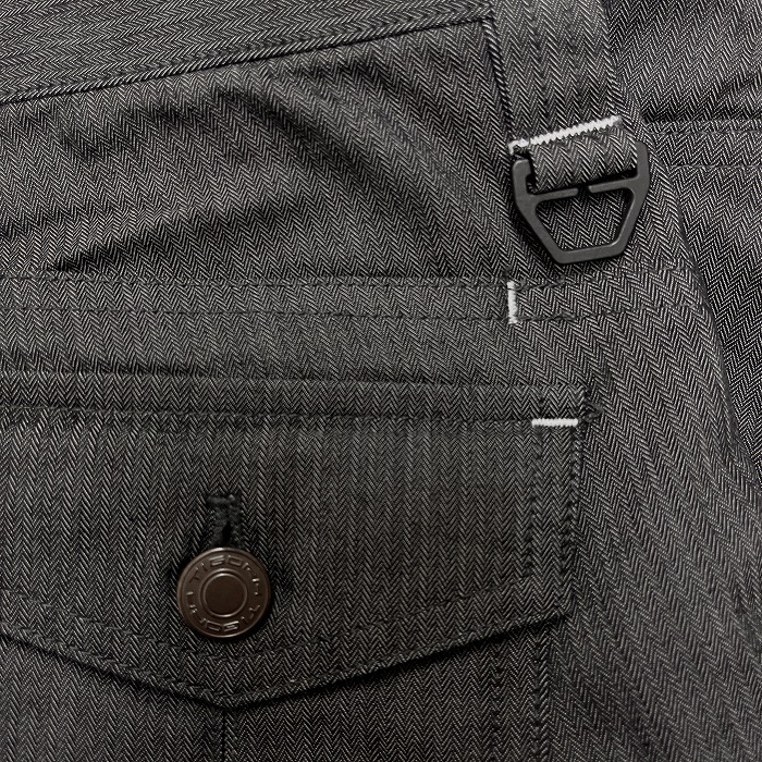 | 商品状態・ディテールなど | (※実測寸法など、多少の誤差はご容赦下さい。) (※商品は衣類の場合は全て畳んで保管しており、服飾雑貨も靴以外は必要に応じ畳んで保管しております。保管や梱包による畳み皺などはご了承下さい。) ●気になったダメージの場所と種類: ・所々:- ・全体:- ・フロントポケット:- ・バックポケット:- ・ヒップ:- ・腿:- ・膝:- ・脛:- ・裾:- ・裏地:- ・内側:- ●その他ディテール:ジップフライ、ロゴ刺繍、ウエストの内側に滑り止めテープ ●付属品など:- ●その他:- |