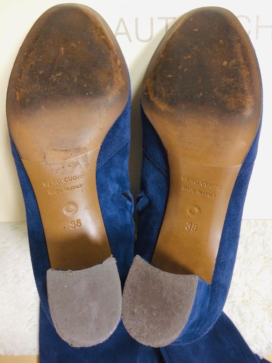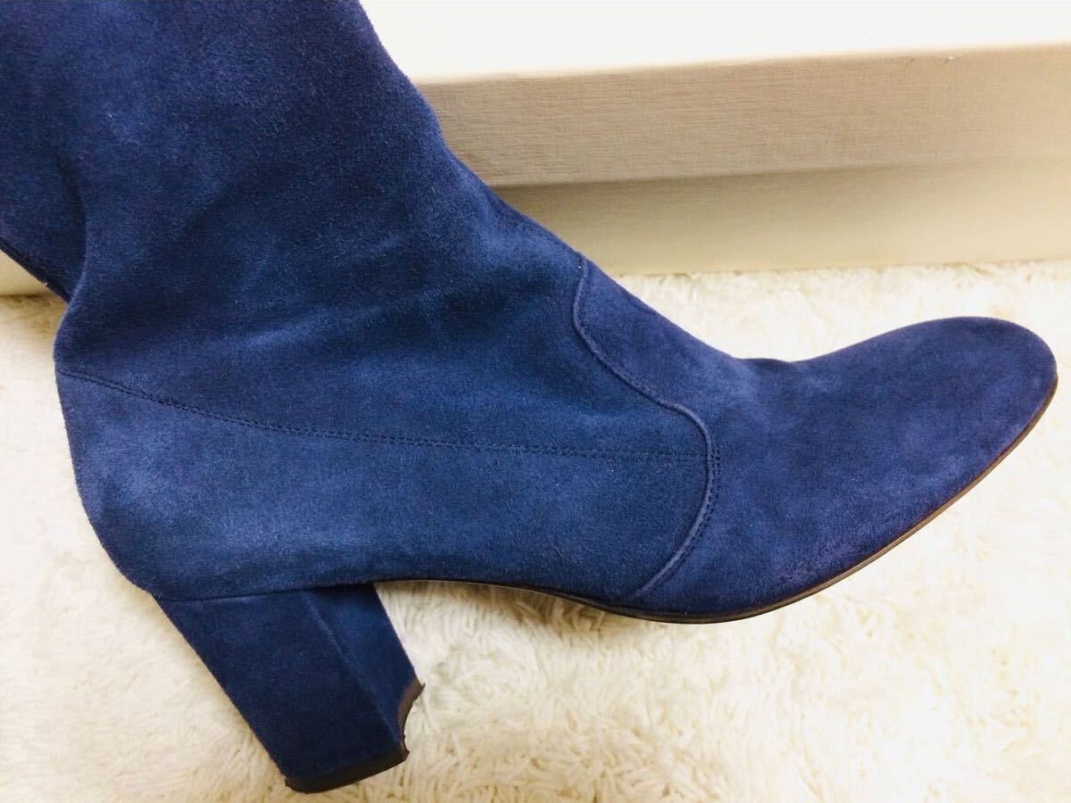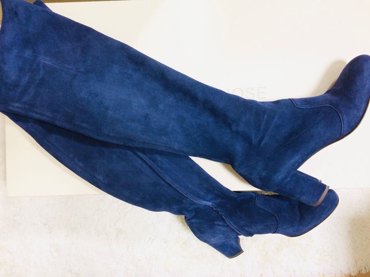 美品★L'AUTRE CHOSE(ロートルショーズ)スエードロングブーツ ネイビー38(約24.5㎝位)