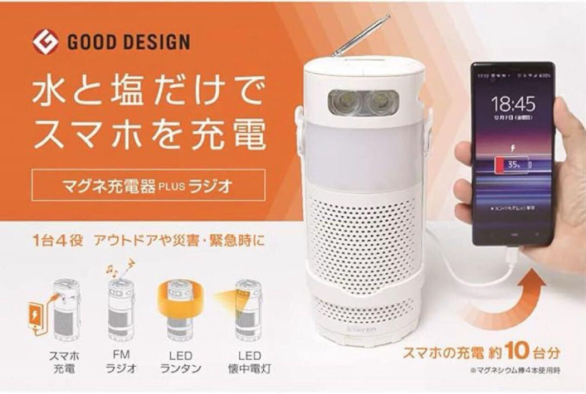 (マグネシウム棒1本を全て充電に使用した場合)充電容量2500mAhのスマ―トフォンだと、約2.5回(目安値)の充電が可能。