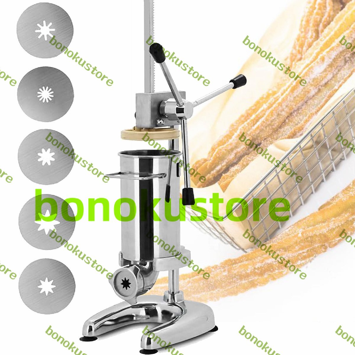 チュロスメーカー、手動スペインラテンフルーツドーナツ充填機、ステンレス製ドーナツ充填機、ノズル 5 個付き、業務用または家庭用 3L