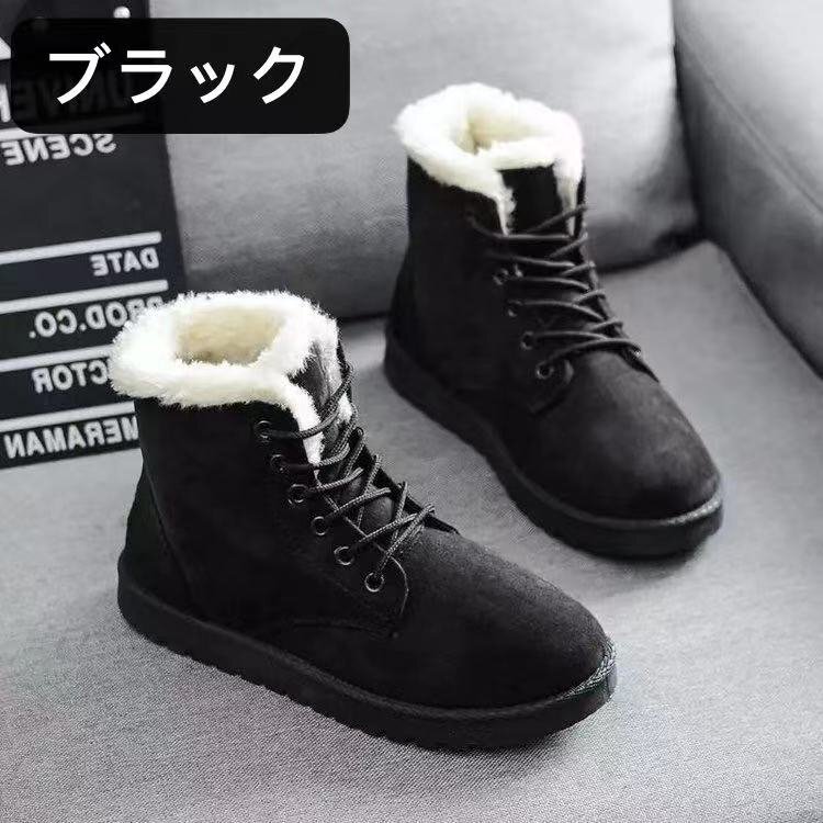 レディース フラットヒール 編み上げ 裏起毛ブーティ あったか ローヒール もこもこ 靴 秋冬新作 ムートンシューズ