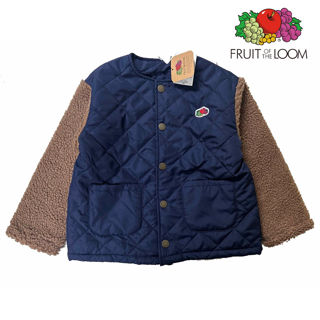 新品 120 ★ Fruit of the Loom フルーツオブザルーム 中綿 キルティング ボア ジャケット ネイビー