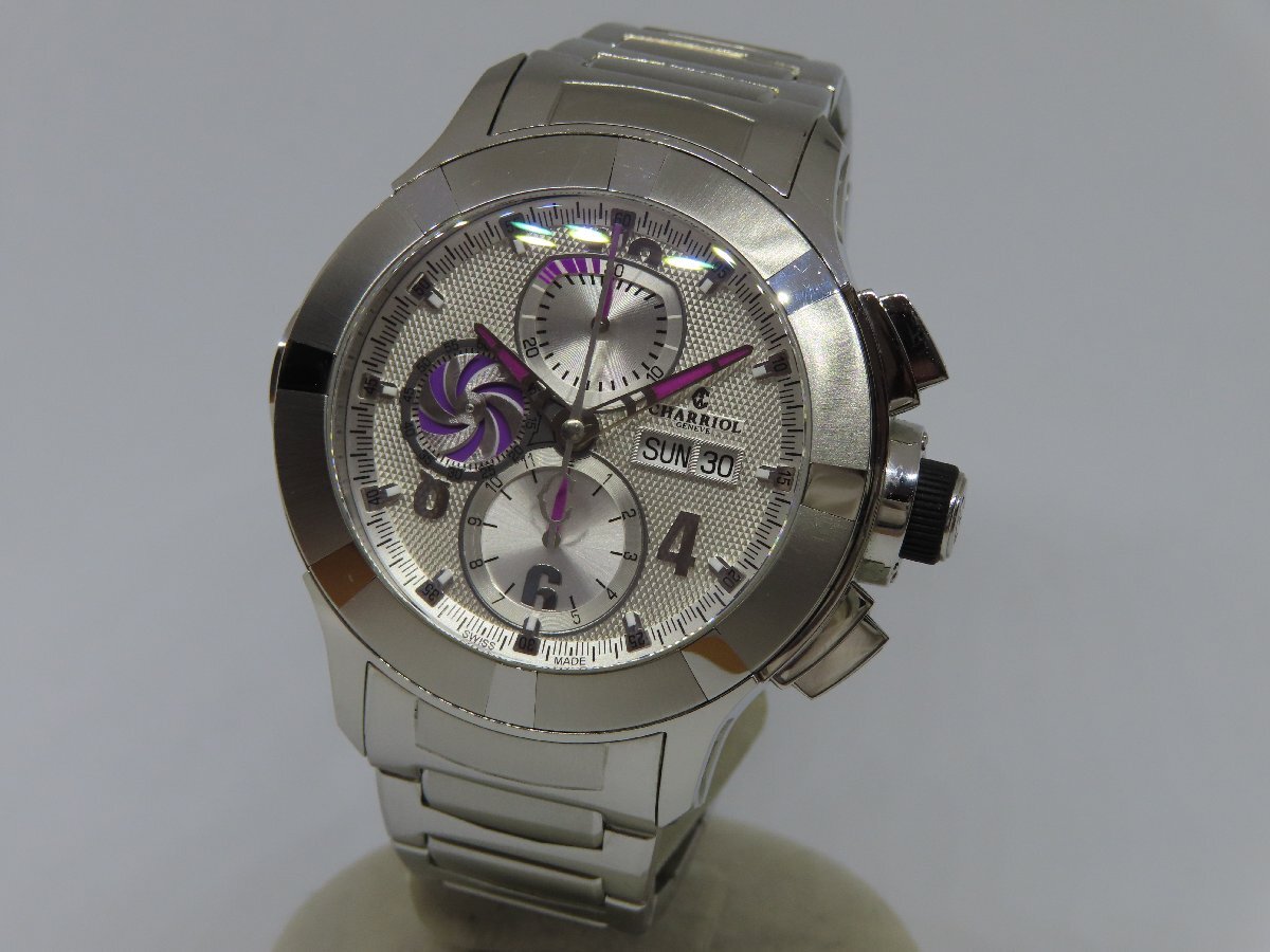 | 【素材】SS 【文字盤色】シルバー 【機械】自動巻き 【Ref.No】C46 【ケースサイズ】約46mm(リューズ除く) 【腕回り内寸】約18,5cm 【動作】タイムグラファーで+10秒くらいで推移しています。 【付属品】ありません |