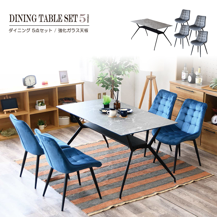ガラスダイニングテーブルセット ダイニングテーブル 4人 4人用 カフェ 大理石調 セラミック調 グレー