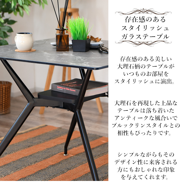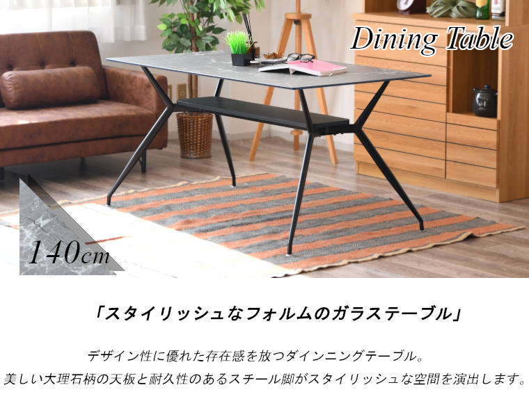 特  徴美しさと実用性の調和、大理石調天板の贅沢なダイニングセット。