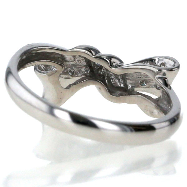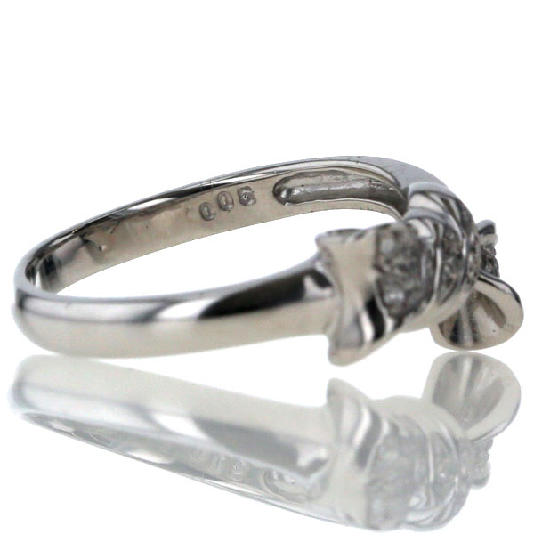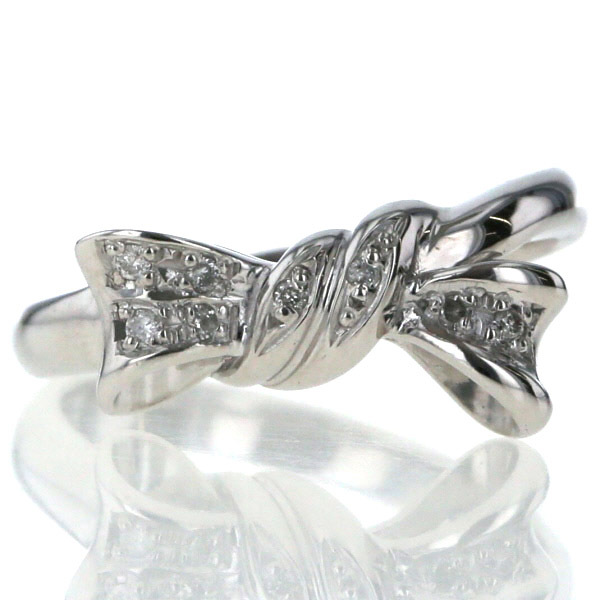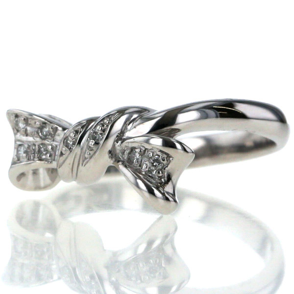 | 商品紹介 | ホワイトゴールドで作られたリングです。 リボンモチーフに、ダイヤモンドを並べています。 少々斜めに傾いたリボンに粋な印象があり、ダイヤモンドが華やかに煌めきます。 |