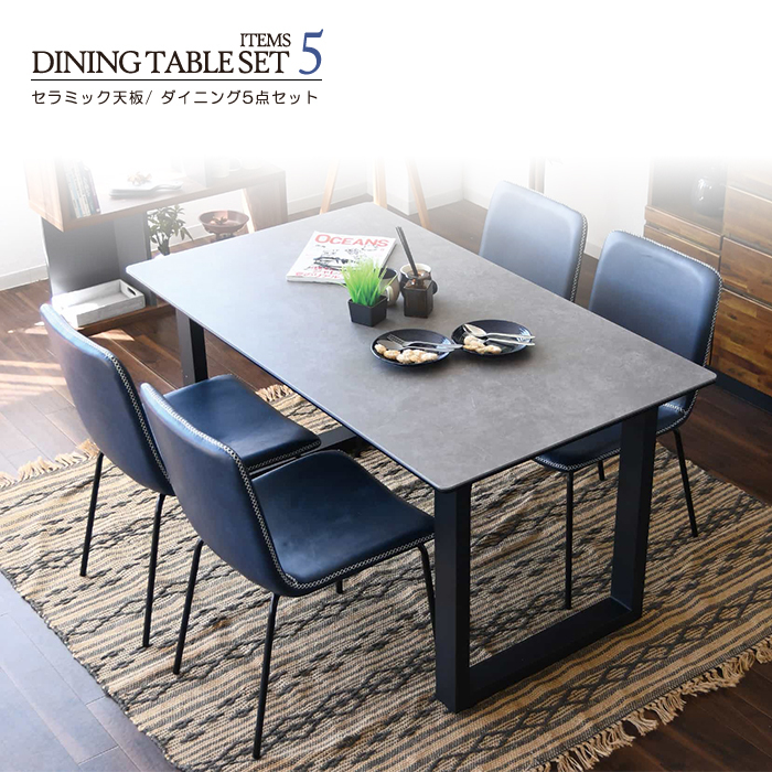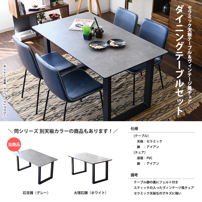特  徴セラミック天板のテーブルとビンテージ風チェアのエレガントなダイニングテーブルセット。