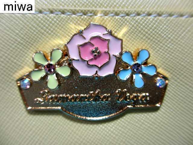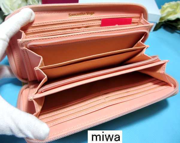 送無 85%引 サマンサベガ お花 ロゴ入 プレート付 ラウンドジップ ファスナー 長財布 薄黄 ベビーピンク 未使用 証明書付 サマンサタバサ