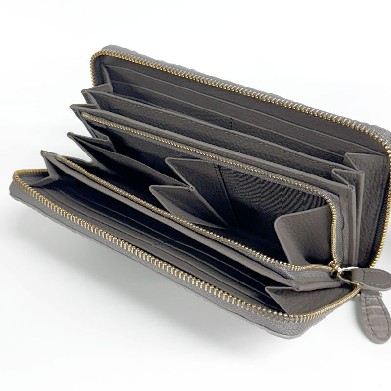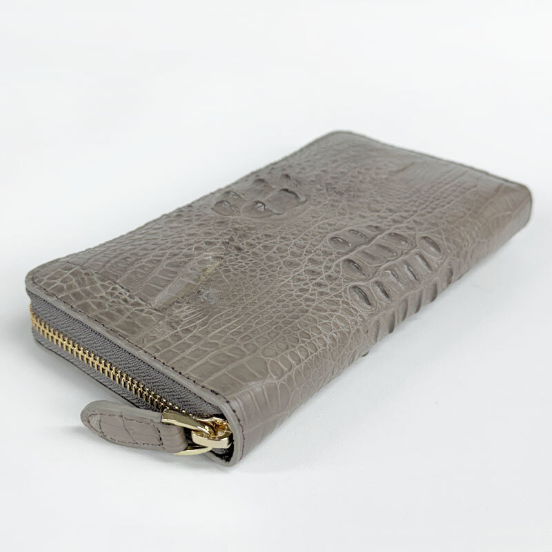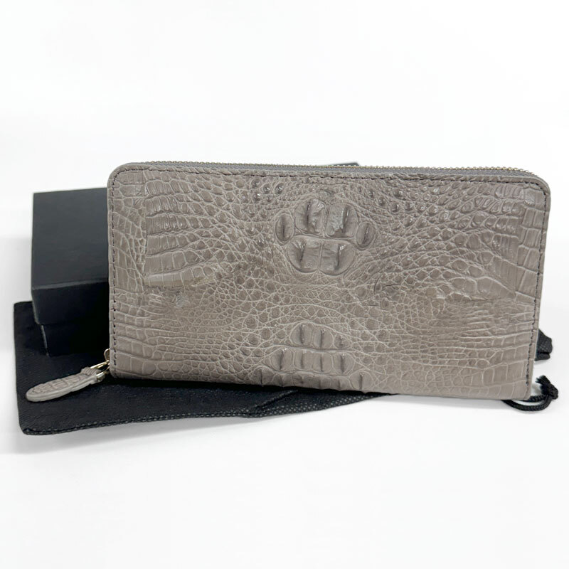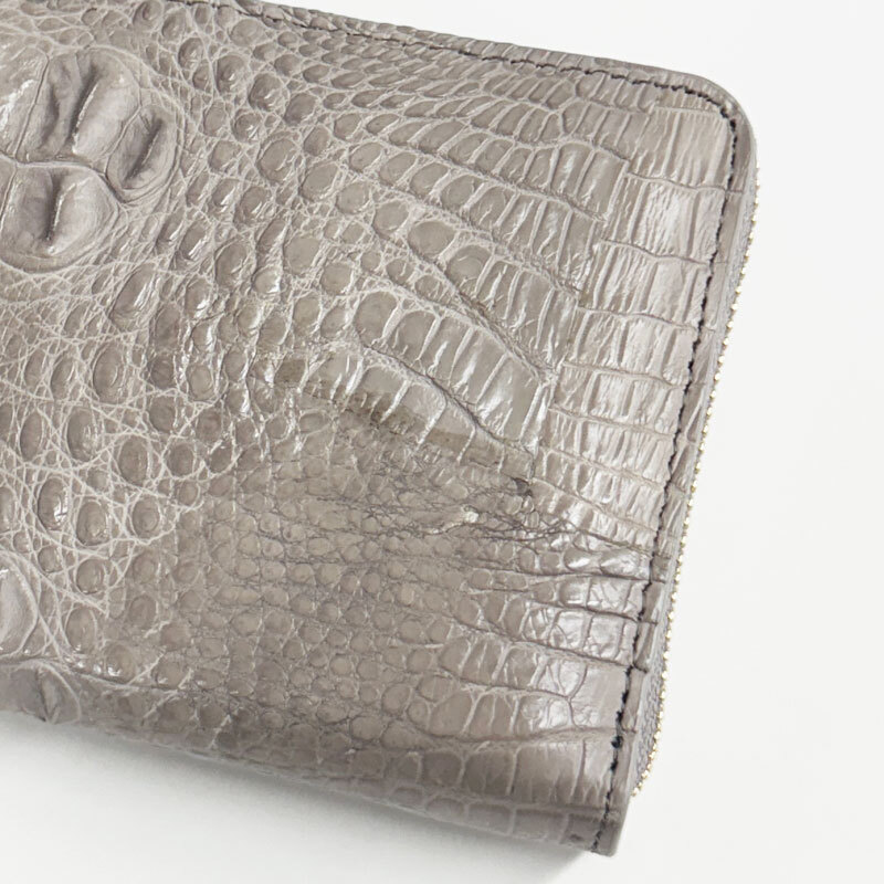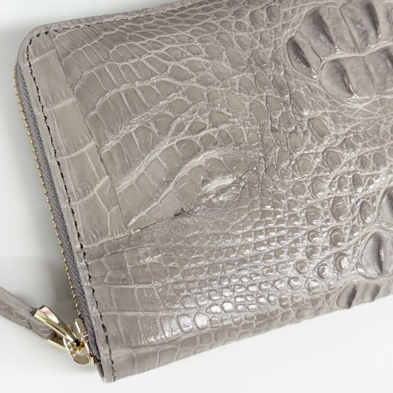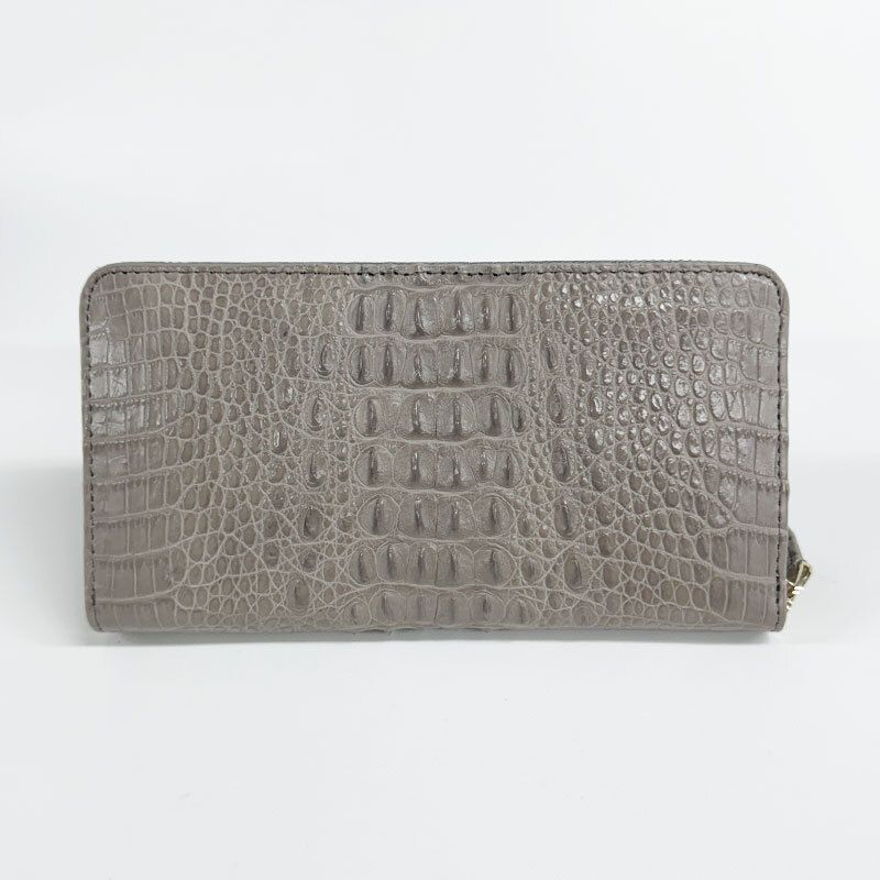 【W11】未使用・処分品 天然 クロコダイル ラウンドファスナー 長財布 鰐革 ロングウォレット トープ(グレージュ)