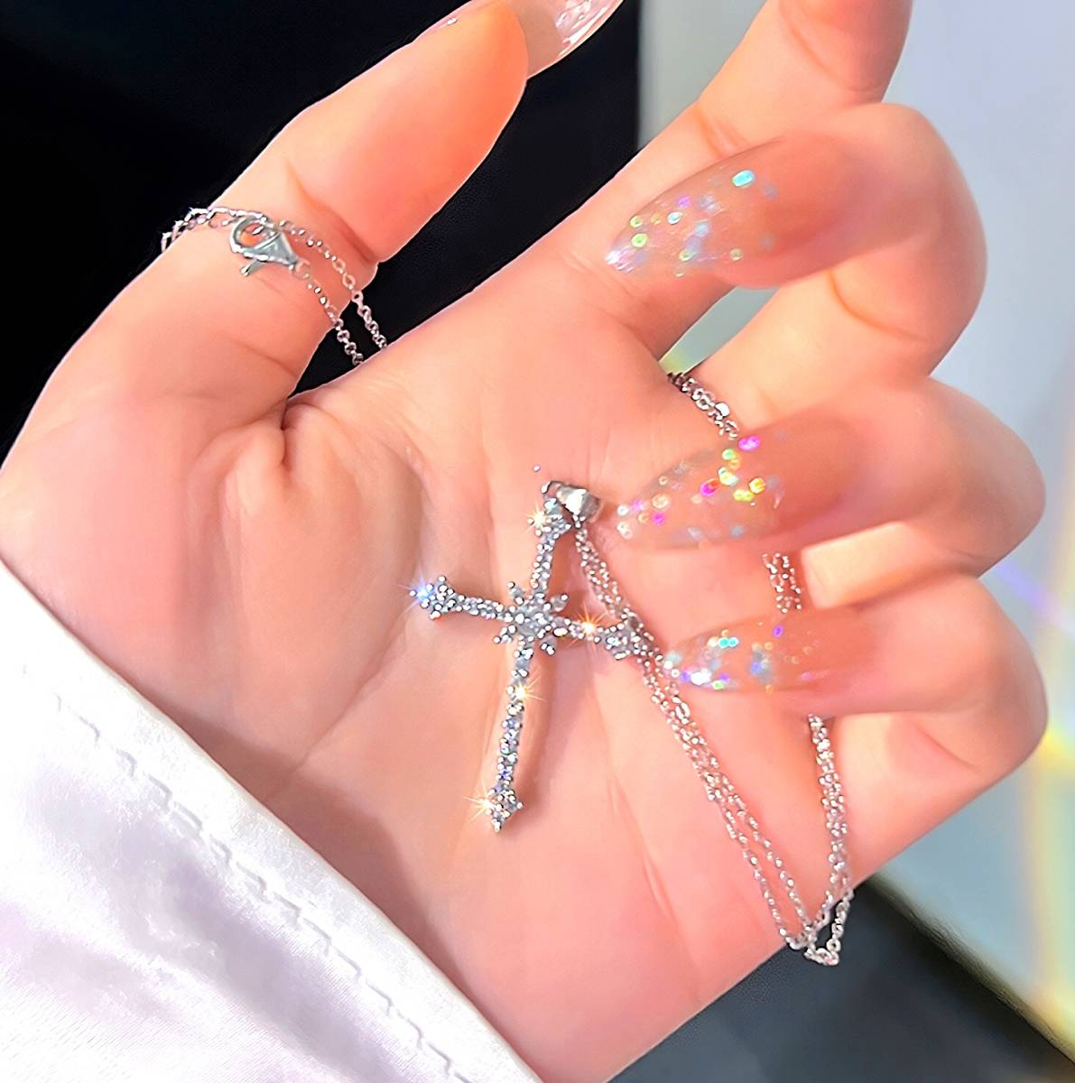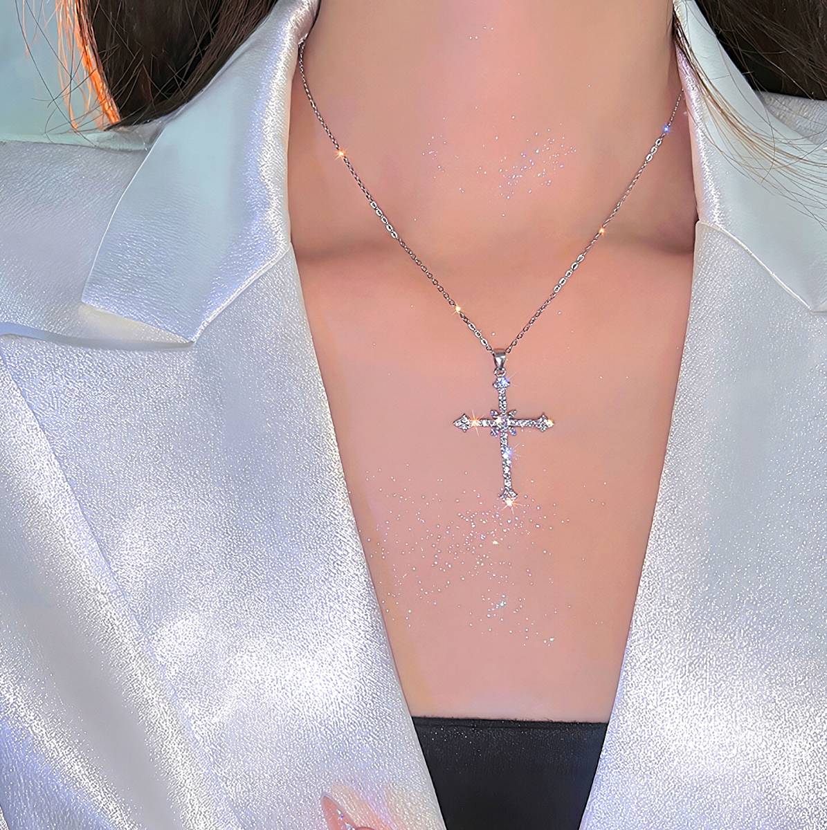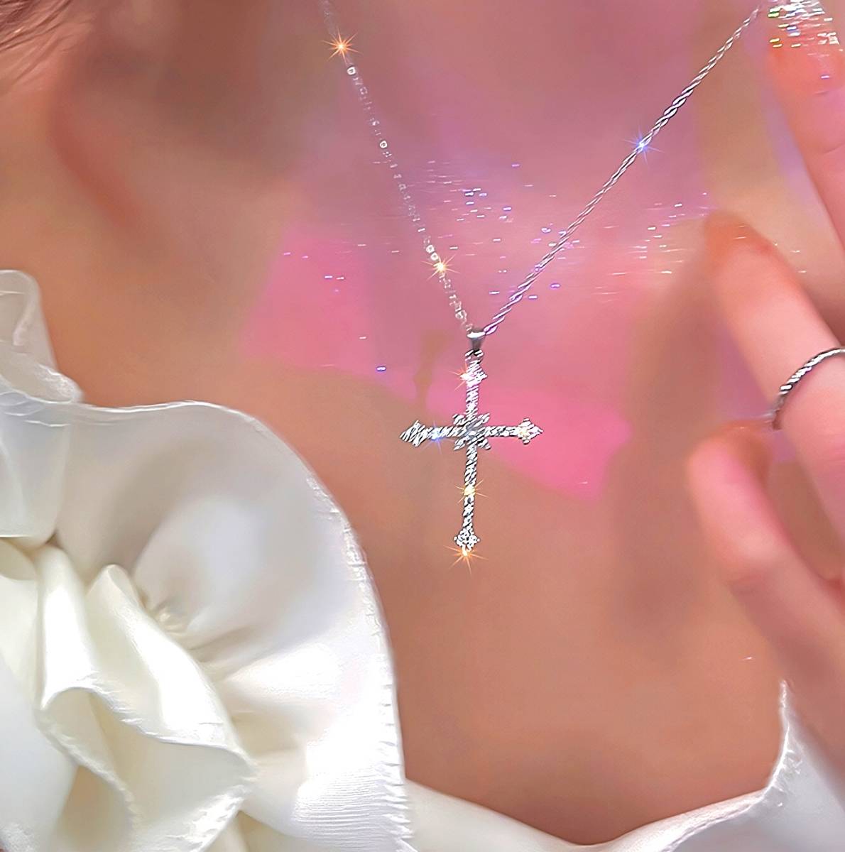 新品★送料無料★虹色ダイヤスパーク十字架信仰クロス プラチナ仕上925シルバーネックレス誕生日プレゼント旅行花見春ギフト国内発送