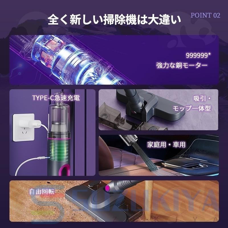 掃除機 コードレス掃除機標準版 32000Rpa 強力吸引 最高性能 軽量 小型 サイクロン式 スティック型 リーナー コンパクト USB-TypeC充電式