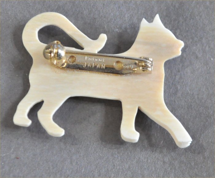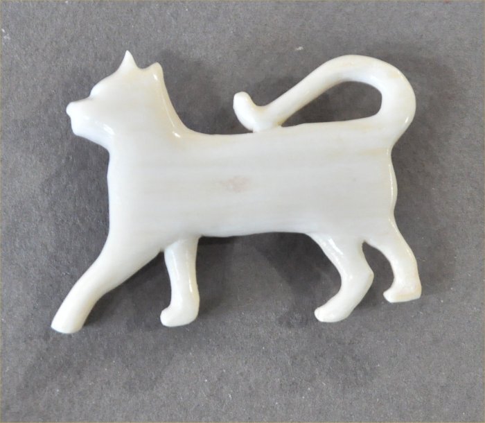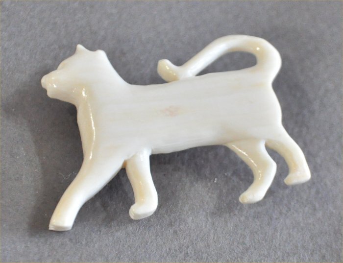 猫のシルエットブローチサイズは、47mm×33mm厚み5mm磨き仕上げマンモス牙の表皮部分使った猫ブローチです。