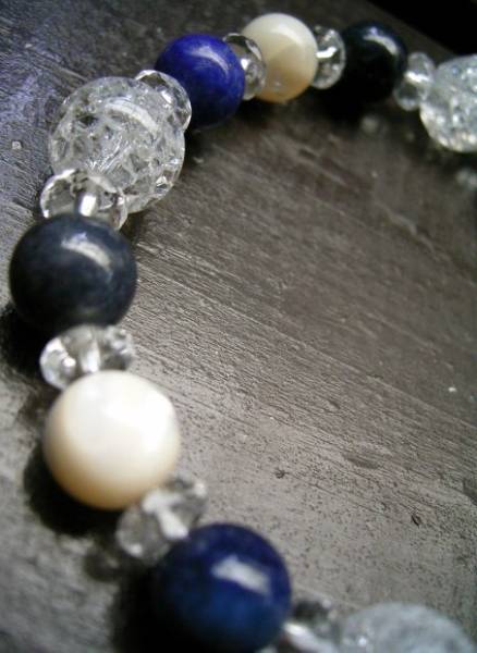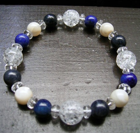 クラック水晶xサファイアxラピスラズリx白蝶貝ブレスレット 天然石 パワーストーン