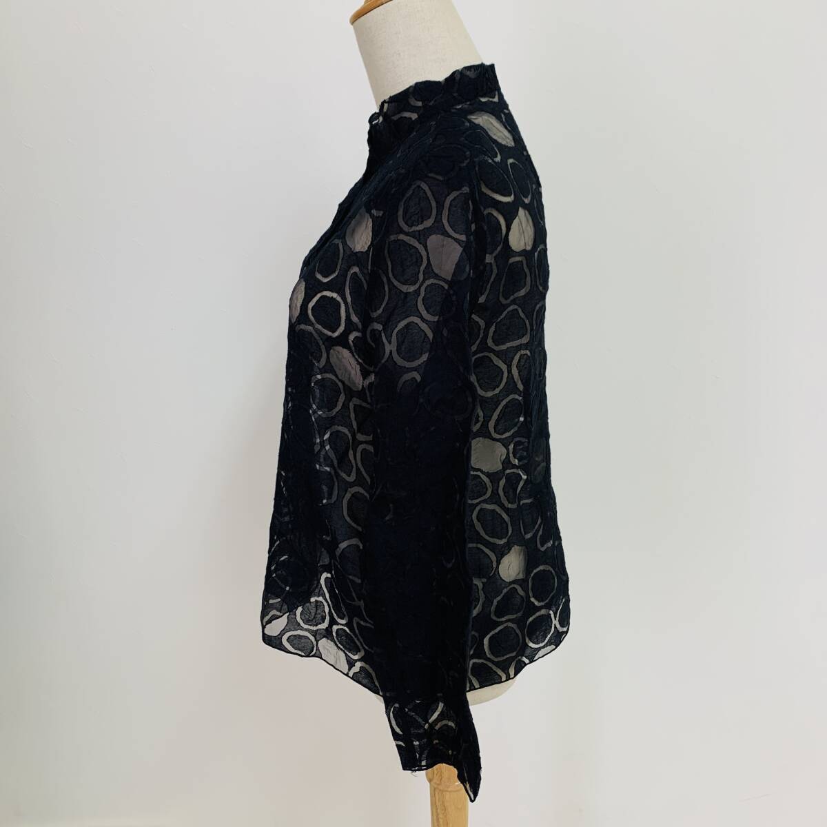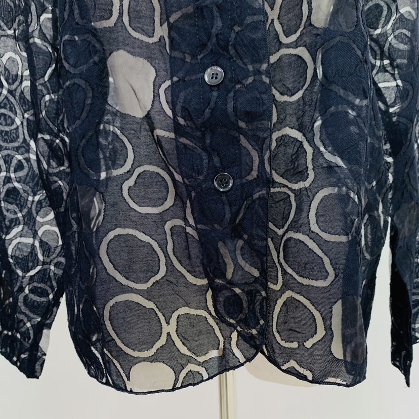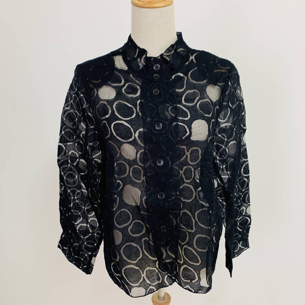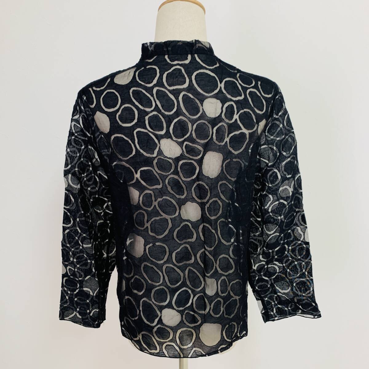 YH2468 Runa レディース 総柄 麻混 レース ジャケット シースルー 薄手 肩パッドあり ブラック 黒 サイズなし お洒落 万能 USED 古着