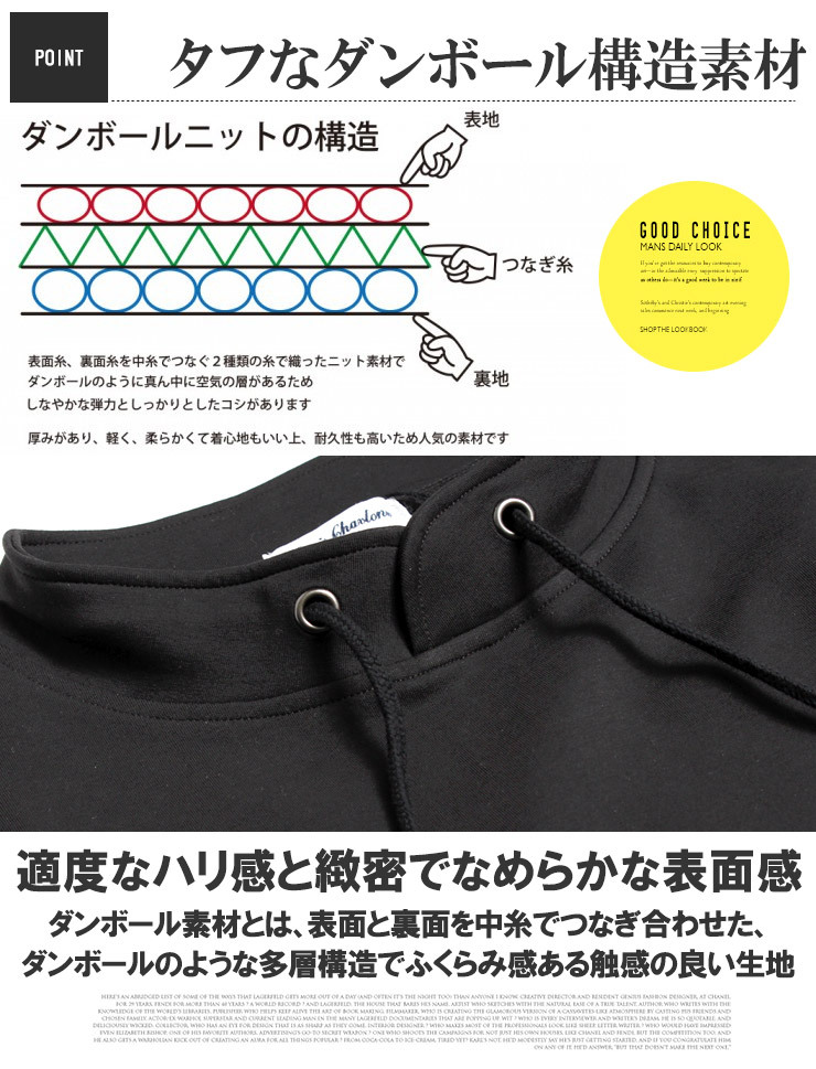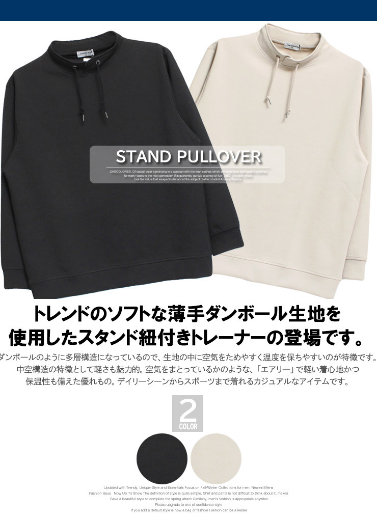 商品説明 | トレンドのソフトな薄手ダンボール生地を使用したスタンド紐付きトレーナーの登場です。 |