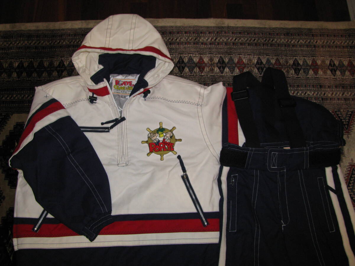 ポパイ&オリーブのスキーウェア上下セットです。サイズは上下ともにM、古い物ですが実使用歴はありません。送料1400円(北海道1800円)でお送りいたします。