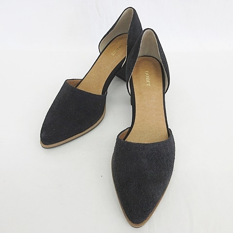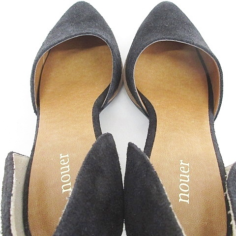 ヌエール nouer パンプス サンダル チャンキーヒール スエード 黒 ブラック 36 レディース