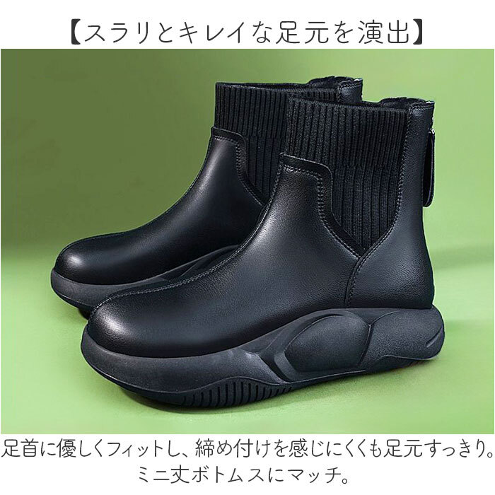 | 商品説明 | ・・【おしゃれにスタイルアップも叶う♪】 ・身長をちょこっとアップ。トレンド感のある足元を作り出す「厚底ショートブーツ」。 ・【異素材ミックスの切り替え】 ・伸縮性のある素材をプラスし、ソックスのように見立てた仕上がり。こなれたワンポイントに。 ・【スラリとキレイな足元を演出】 ・足首に優しくフィットし、締め付けを感じにくくも足元すっきり。ミニ丈ボトムスにマッチ。 ・【バックファスナーで仕入れスムーズ】 ・背面側からスッと足を滑らせて、ファスナーを閉めるだけ。脱ぎ履きに手間取らない! ・【足先まで優しく包み込むつくり】 ・本体内側は滑らかな起毛素材。優しい質感で、履き心地も快適。 ・(※)ボリュームのない起毛素材です。 ・【屈曲性があり、歩きやすさが向上】 ・つま先に窮屈感のないラウンドトゥ。程よい屈曲性もあり、蹴り上げやすくつまずきにくい! ・【取り外せて衛生的なインソール】 ・インソールは、サッと外してお手入れ可能。いつも清潔をキープできる◎ ・【安定感のある歩行をサポート】 ・高さを出しつつ、前後差を抑えて疲れを軽減。地面からの衝撃もガード。 |