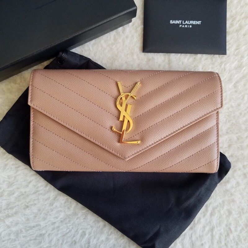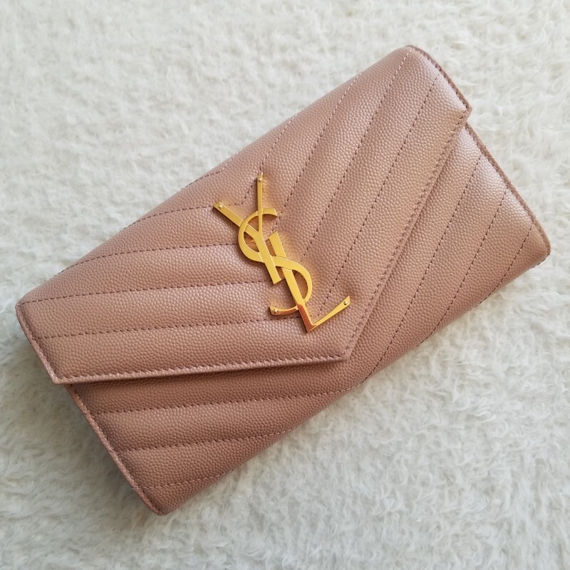 新品 SAINT LAURENT サンローラン マトラッセ ラージ フラップ 長財布 VINTAGE PEACH 372264BOW019830