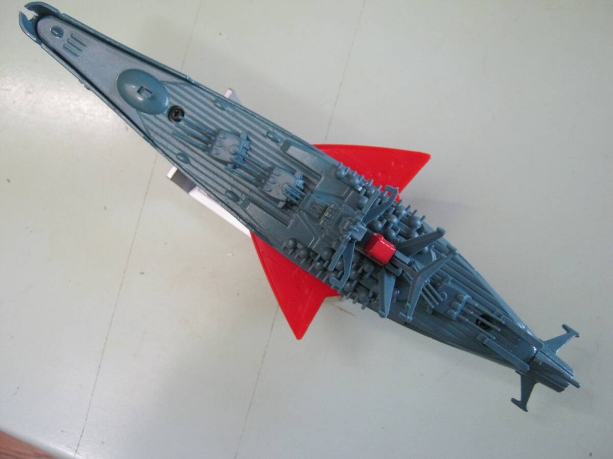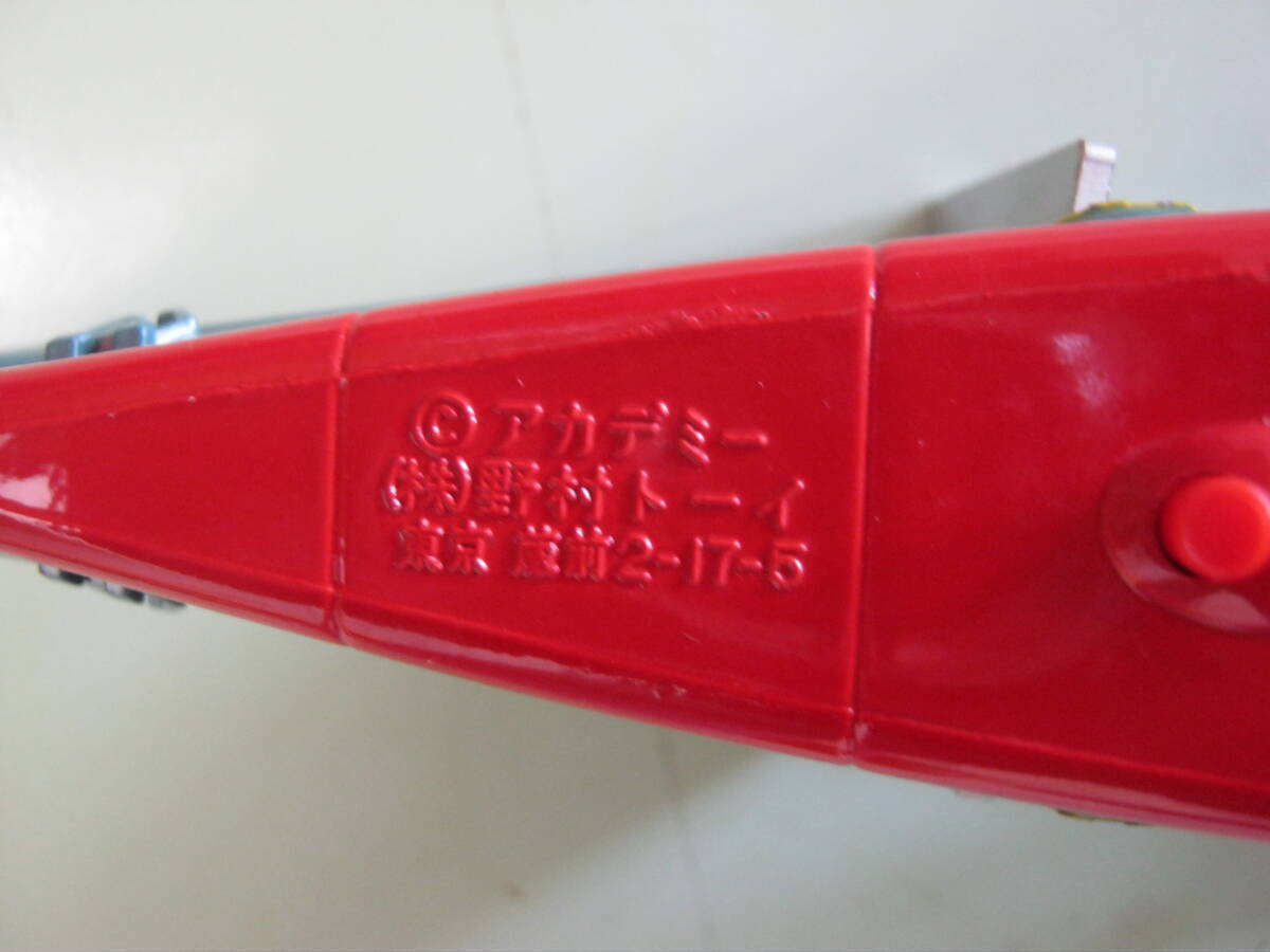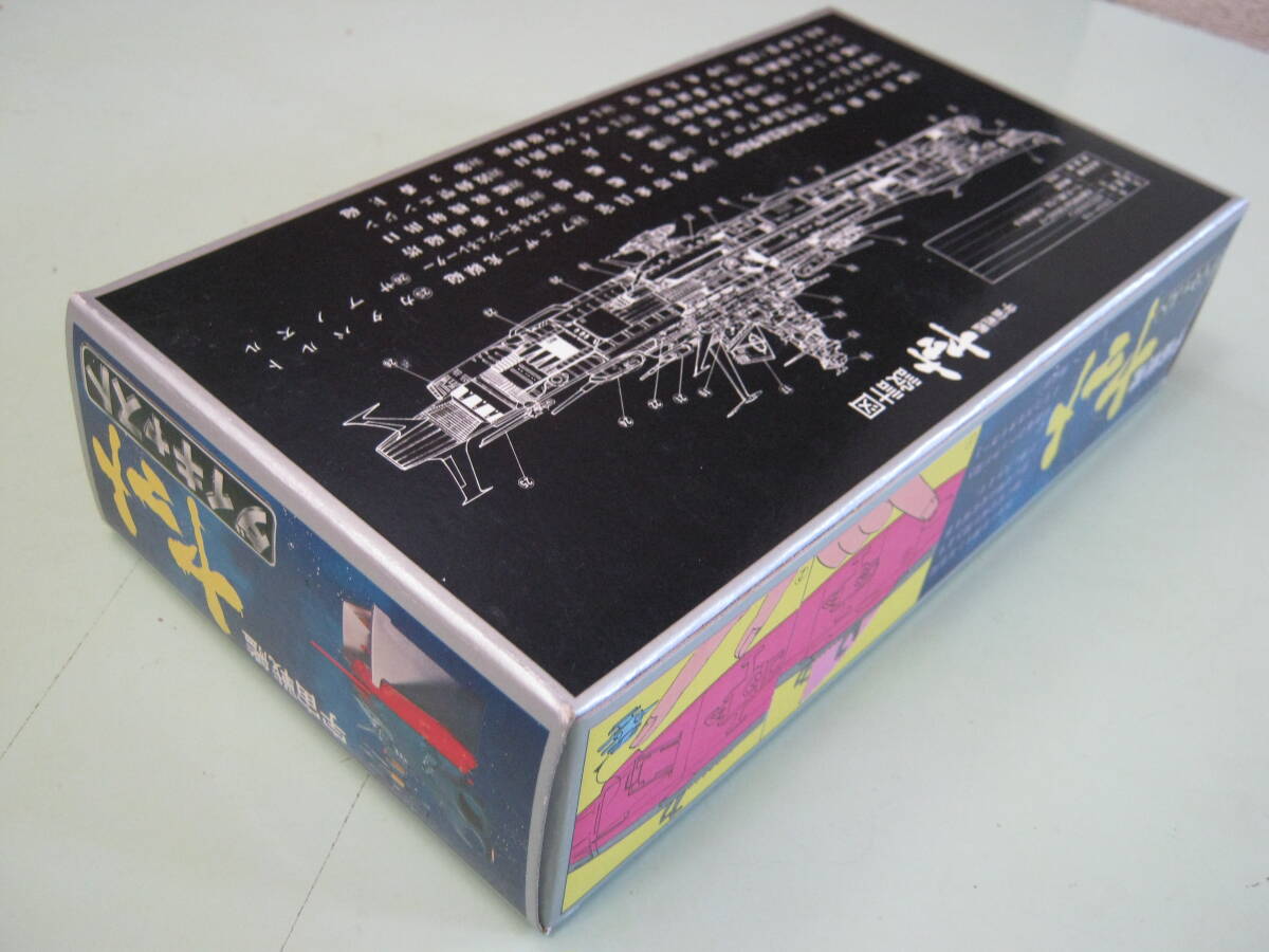 当時物です。未開封、未使用品ですが撮影、検品の為箱からだしました。本体の状態は経年の汚れがあります。本体に破損、欠品はありません。①本体の底面前方のボタンスイッチを押すと本体の左右同時に安定翼が開きます。閉じる時は安定翼を手で押し入れます。②本体の底面後方の格納庫のハッチが開きます。(コスモタイガー3機収納)以上箱に印字されている部分を補足しながら記載しました。本体の底面前方部分に刻印があります。刻印は丸の中にCの文字 アカデミー・(株)野村トーイ 東京 蔵前2-17-5 以上刻印があります。サイズ約5.6㎝×20㎝×3.3㎝(左右の翼を収納時)位です。付属品は台×1 コスモタイガー×3機 宇宙パネル×1(サイズ約13.8㎝×32.8㎝位です。)箱の状態は汚れ、キズがあります。箱サイズは約12.2㎝×22.5㎝×5.4㎝位です。箱の裏面が宇宙戦艦ヤマトの設計図が印刷されています。