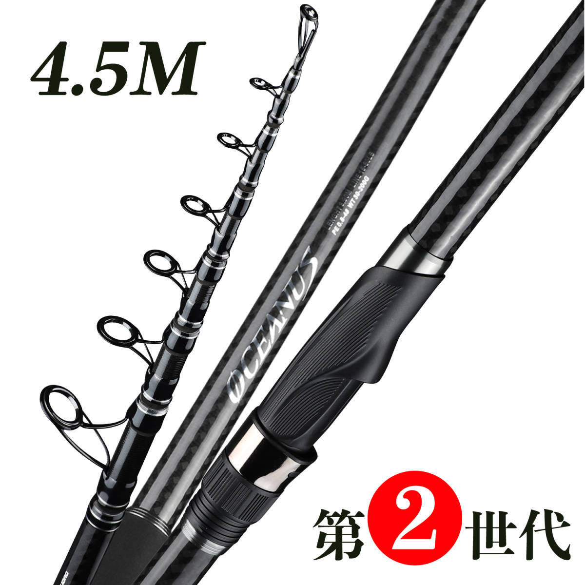 第2世代 YU321(4.5M) ロッド コンパクト 釣り竿 投げ竿 釣竿 炭素繊維 伸縮式 PE0.8-4#対応 超遠投 大物 高弾性 カーボン繊維 操作簡単