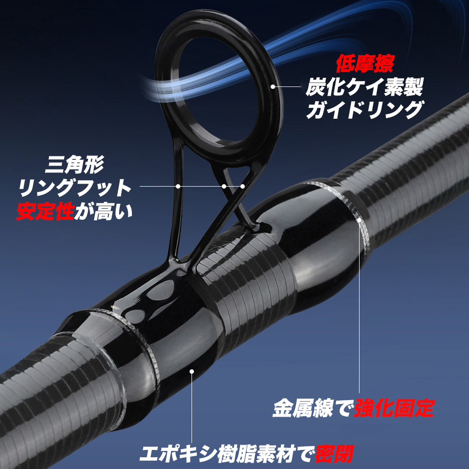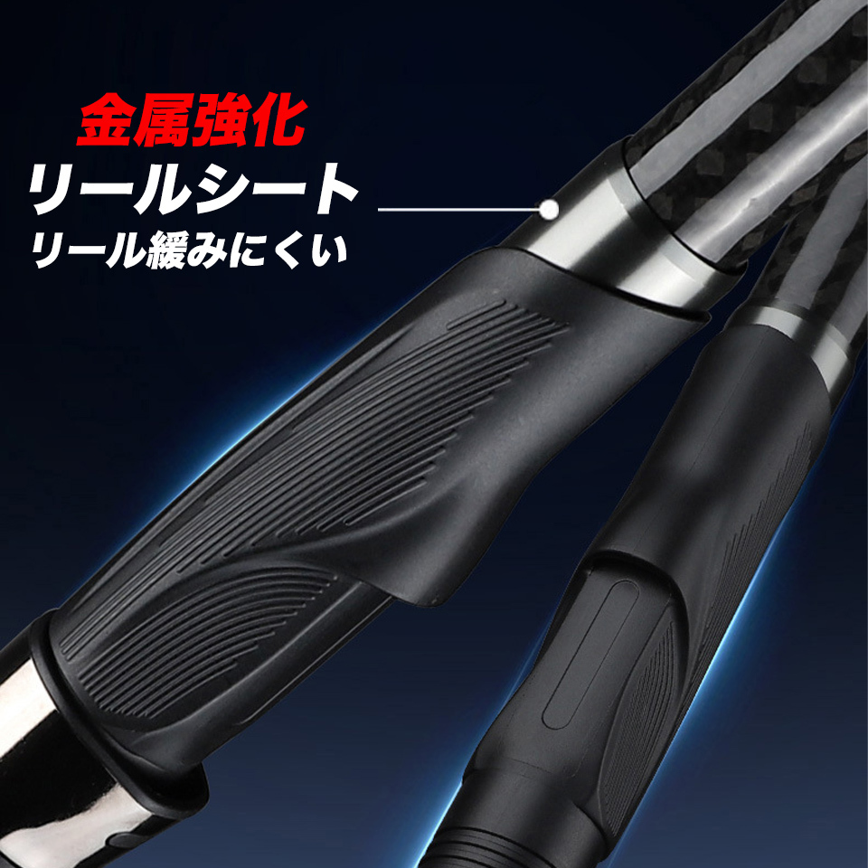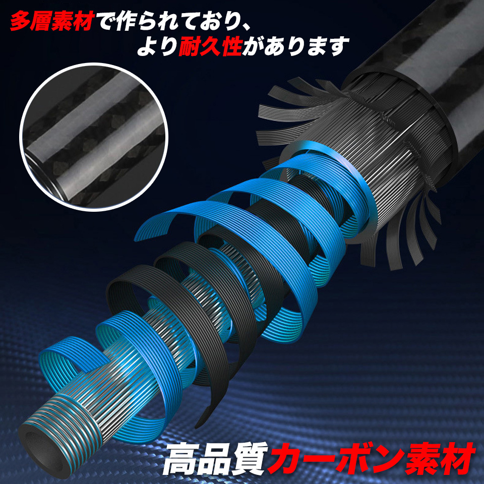 【炭素繊維と合金材質】ロッドはハイブリッド炭素繊維から作られ、超硬質であると同時に弾性に優れていて、荷重力が良いです。