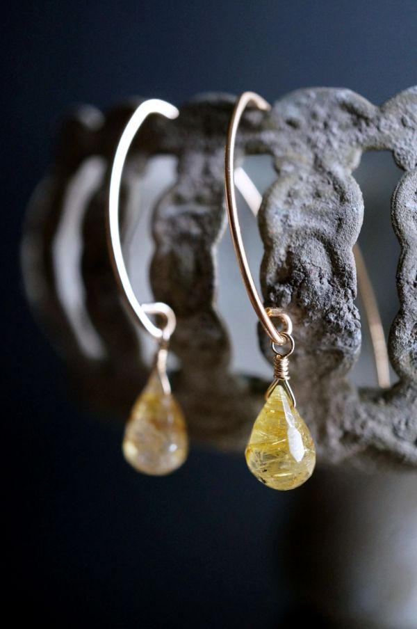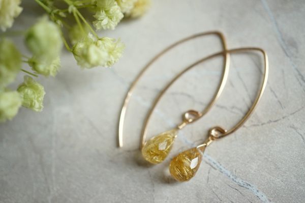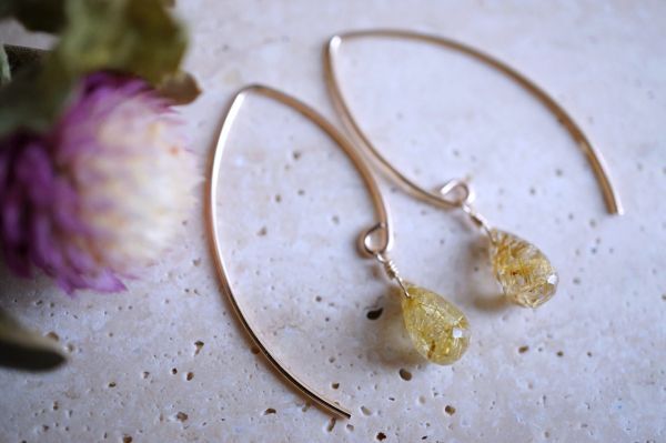 K14GF ピアス 2316 ゴールデンルチルクオーツ 天然石・パワーストーンピアス