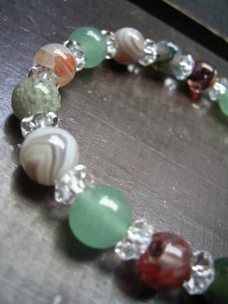 ヘマタイトインクォーツxアベンチュリンxモスアゲートブレスレット 天然石 パワーストーン