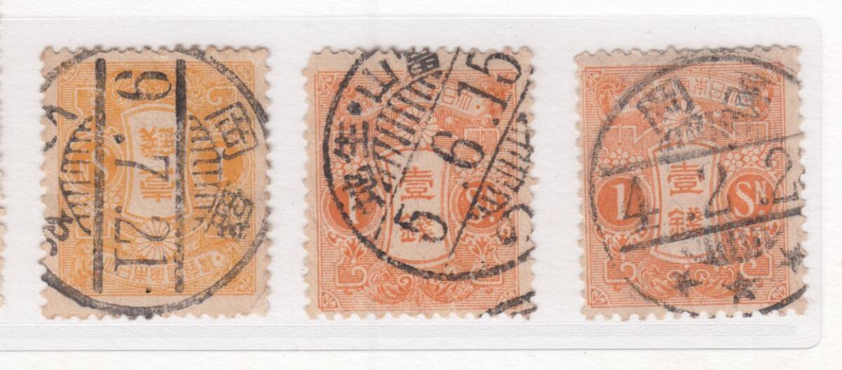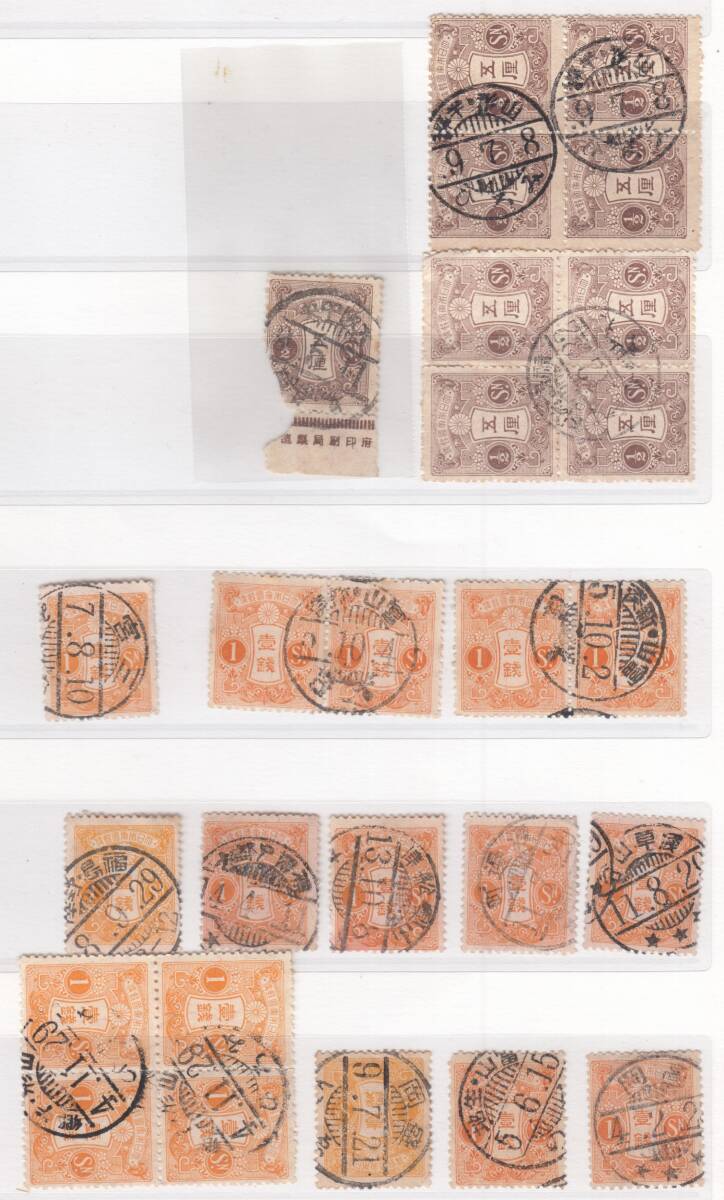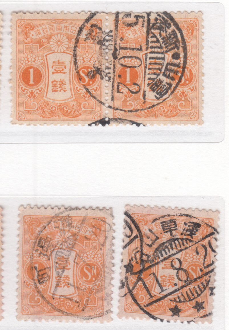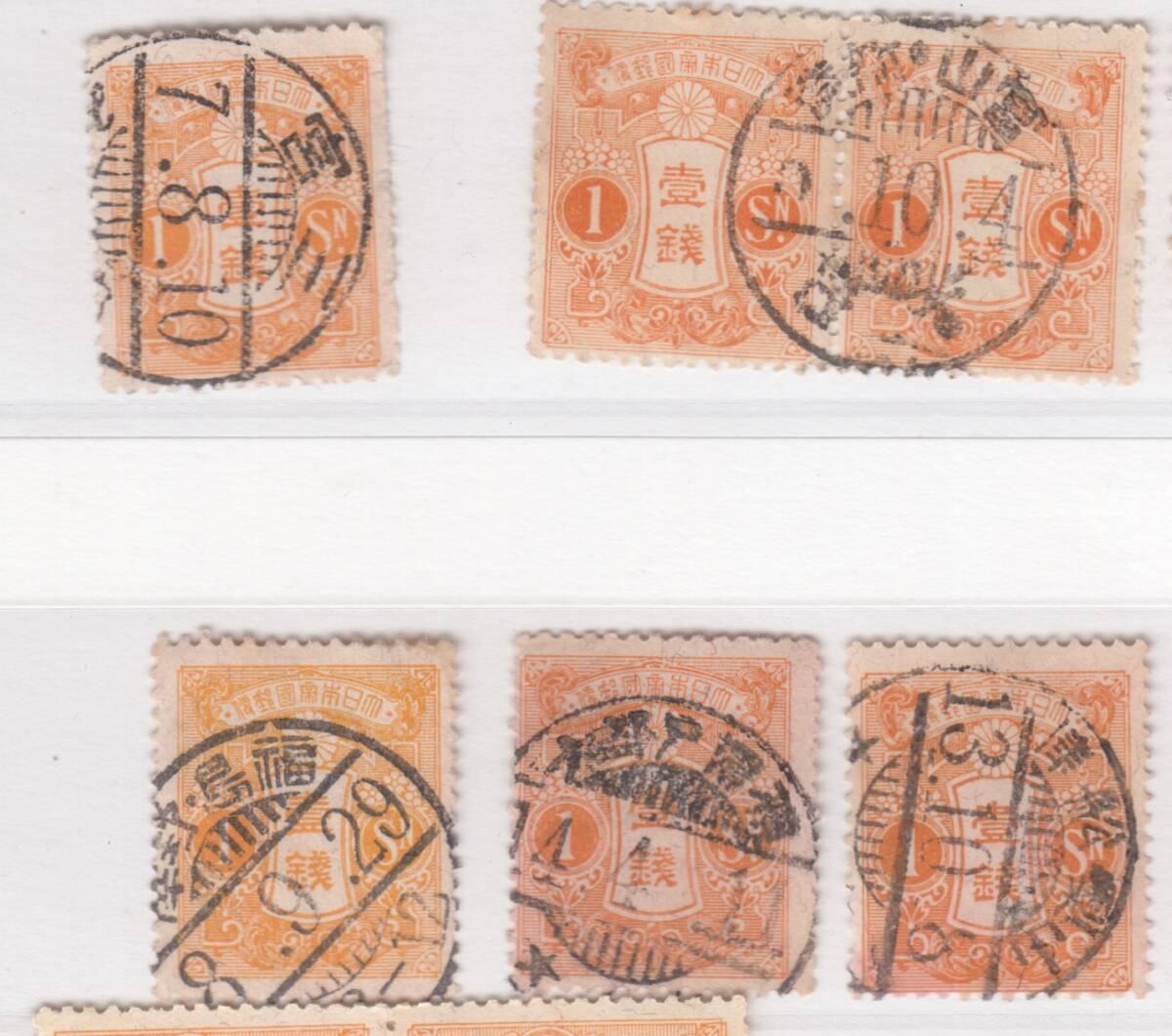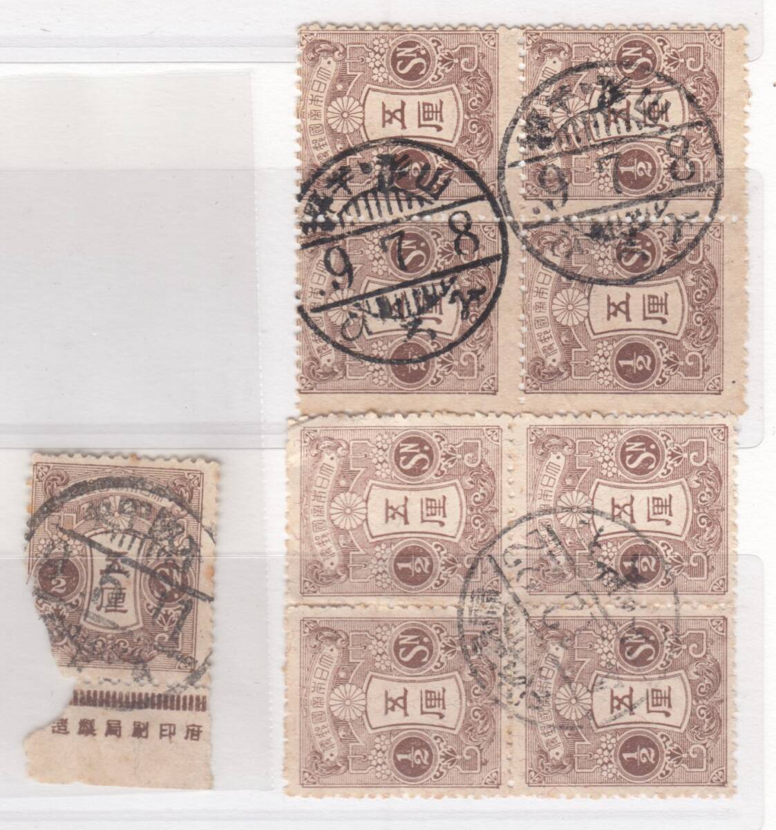 旧大毛5厘、1銭 単片~田型 櫛型印