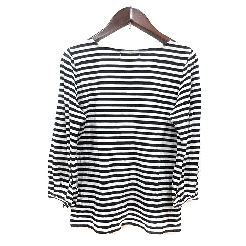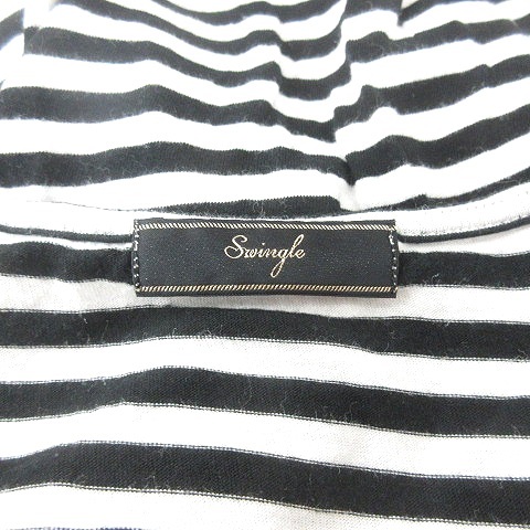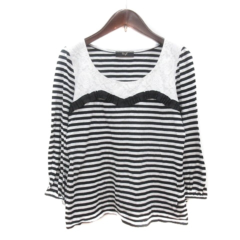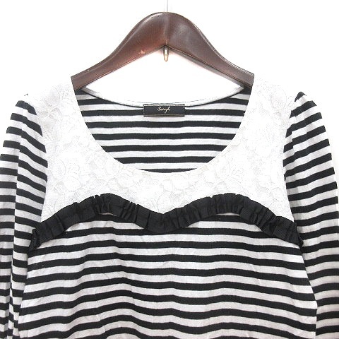 スウィングル Swingle カットソー クルーネック ボーダー レース 長袖 切替 1 S 白 ホワイト 黒 ブラック /MN レディース