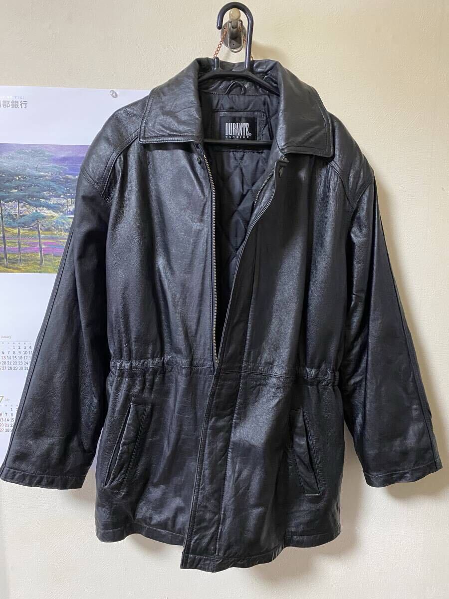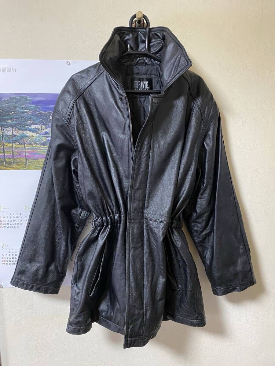 レザージャケット レザーコート DURANTE GENUINE デュランテ 裏地キルティング Sサイズ ドローコード ヴィンテージ 古着