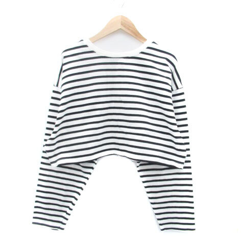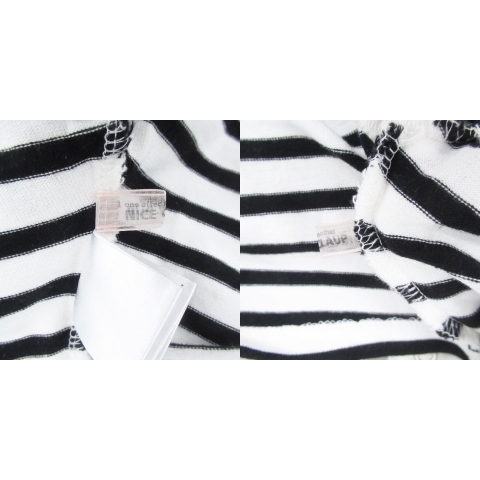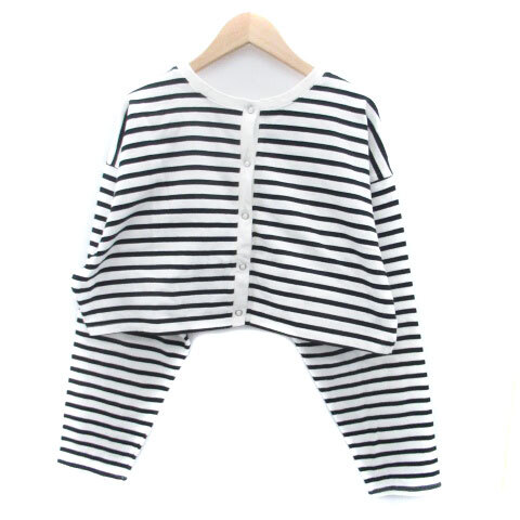 ナイスクラップ NICE CLAUP カーディガン ラウンドネック ショート丈 ボーダー柄 オフホワイト 黒 ブラック /HO32 レディース