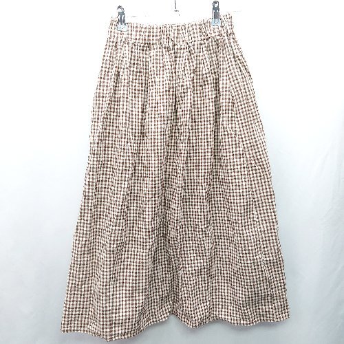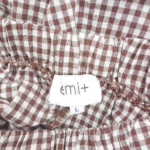 ◇ ⊂ emi+ エミプラス チェック柄 ウエストゴム ミモレ丈 セットアップ サイズL ブラウン レディース E