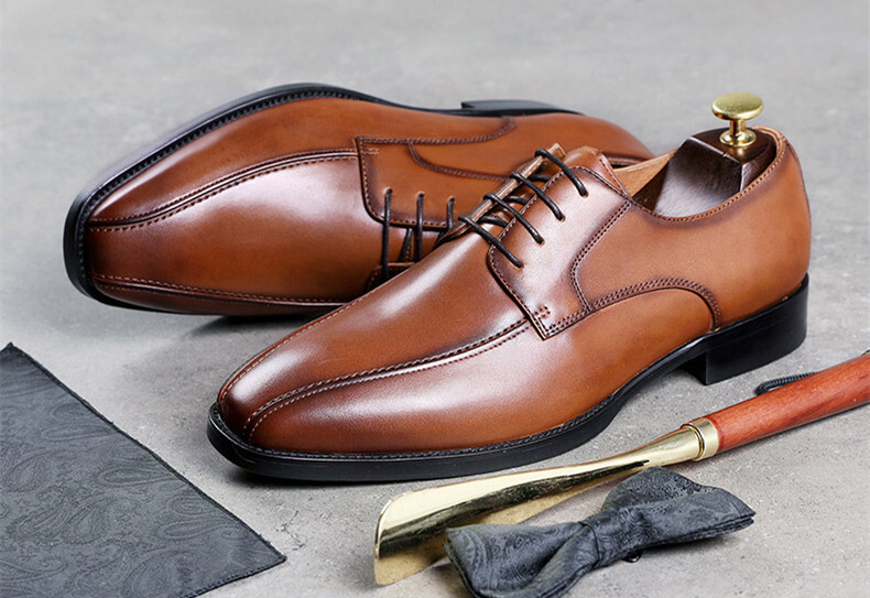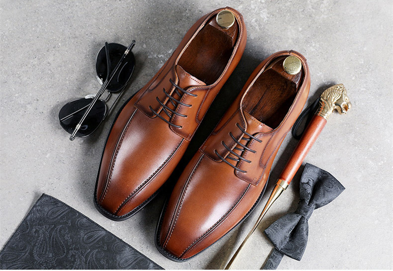 ビジネスシューズ 防滑 革靴 スクエアトゥビジネスドレスシューズ メンズカジュアル ブラウン 25cm