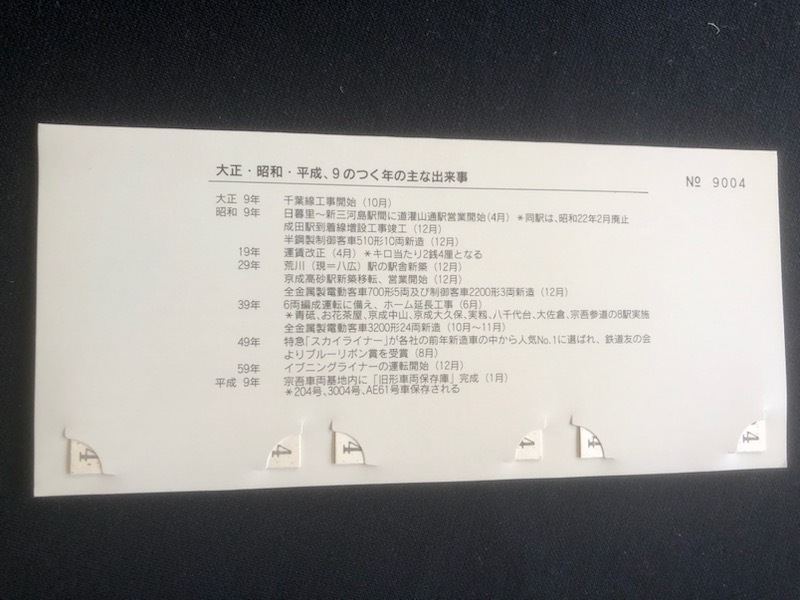 京成電鉄 平成9年9月9日日にち並び乗車券