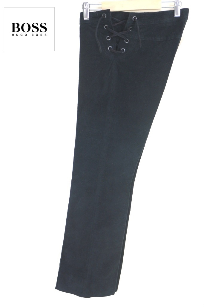 ■美品■正規品■BOSS■レディース サイドシューレース 紐編上げ ストレッチパンツ 胴囲74cm前後 F ブラック ヒューゴボス HUGO 女性 黒