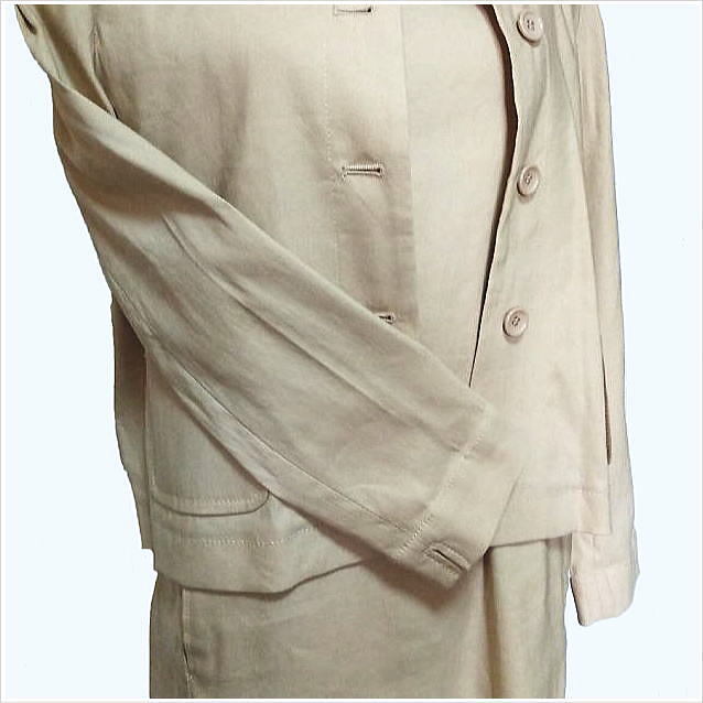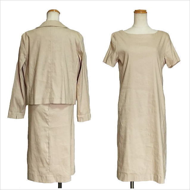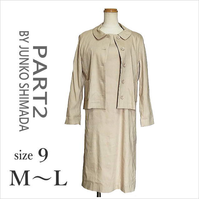〔PART2 BY JUNKOSHIMADA〕ベージュジャケット・ワンピースのスーツ 麻混 レディース パートツーバイジュンコシマダ 9 M~L位 *送料込み