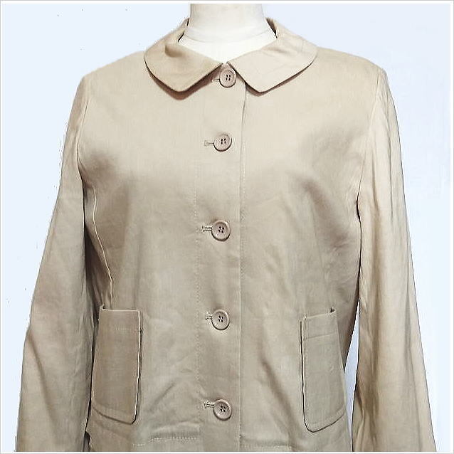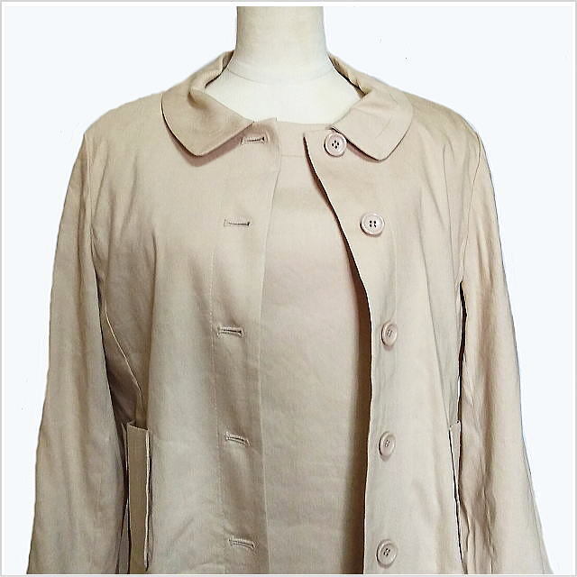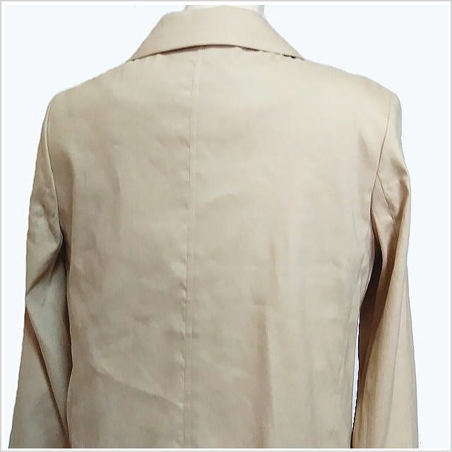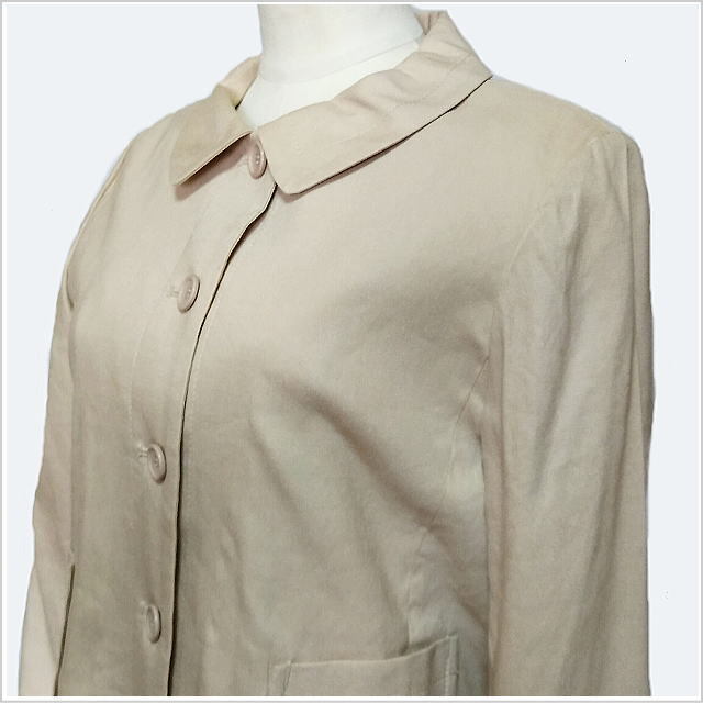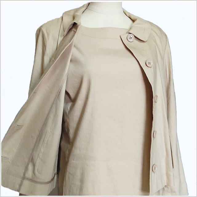 ジャケットは衿付きが上品です。中央にボタン(5個)付き。両裾にポケット付き。