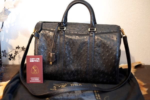 JRA認証、信頼のブランドFURDiのオーストリッチボストンバッグ。