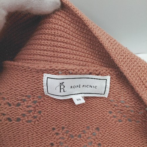 ◇ ⊇ ROPE PICNIC ロペピクニック レース 長袖 ニットカーディガン サイズ38 コーラルオレンジ レディース E