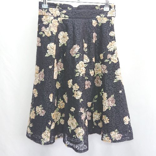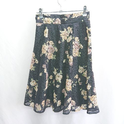 ◇ ⊂ MISCH MASCH ミッシュマッシュ 花柄 レース 膝丈 フレア スカート サイズS ネイビー レディース E