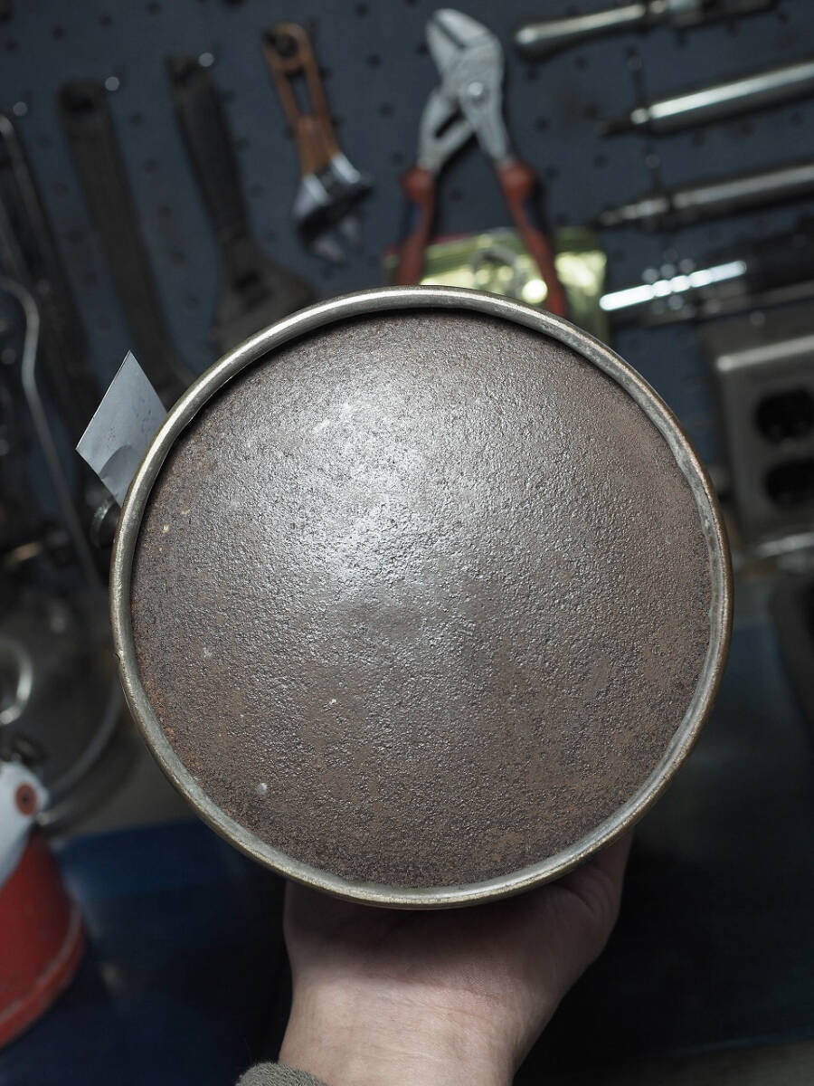 ○海外のレストアマンの間で流行った方法ですが、部品を強い酸やアルカリなどの薬品に漬けて洗う方法があります。 そうすることで手軽にサビ取りや洗浄ができますが、部材表面を薬剤で腐食させるので、ランタンの寿命を大幅に縮めてしまいますので当方では行いません。