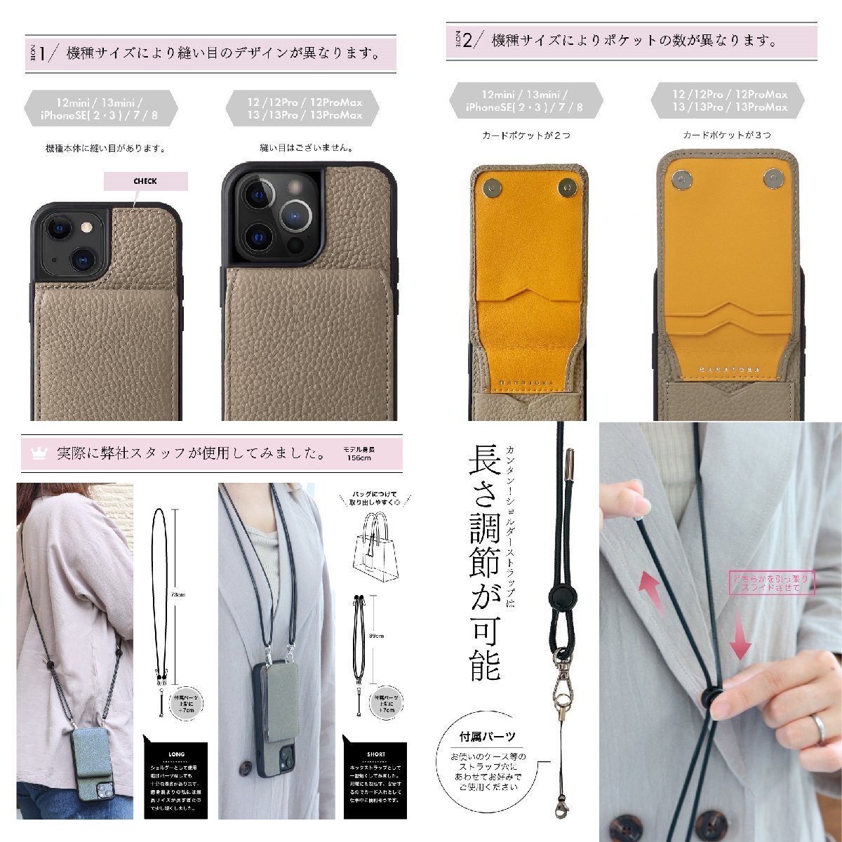 iPhoneスマホケース iPhone15/14/13/12 Pro/Promax/mini/plus ★5色 本革★SE(第2/第3世代)/8/7 ショルダー カバー HANATORA★scpg