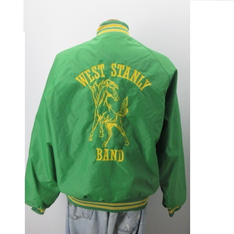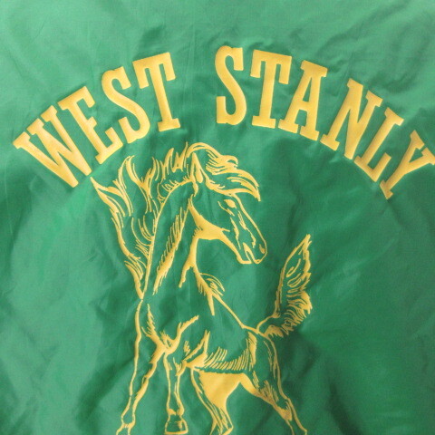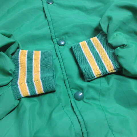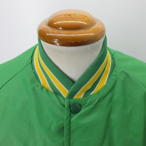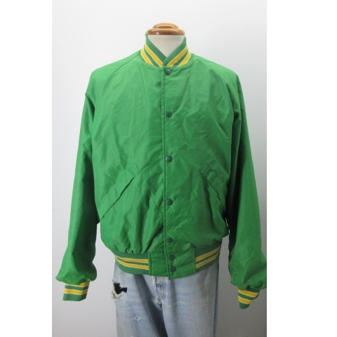 ★Size M 表記 M着た感じ ~170cm肩幅 ーcm, 身幅 59cm , 着丈 65cm,裄丈 86cm 中央から袖口★アメカジ古着 80s頃 スタジャン ナイスなユーズド感です ★Condition 10/7使用感はございますが、目立つダメージはありません袖などに汚れ★Material ナイロン ★Color 緑★Made in USA